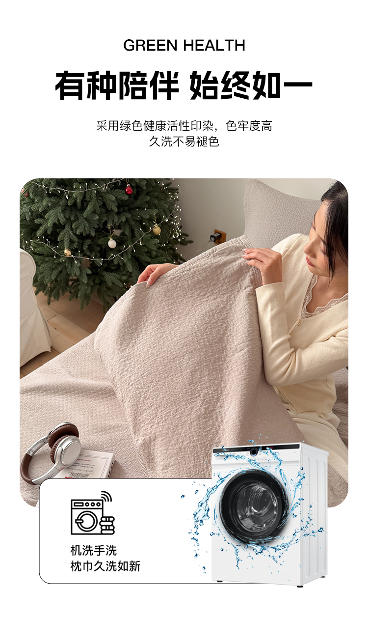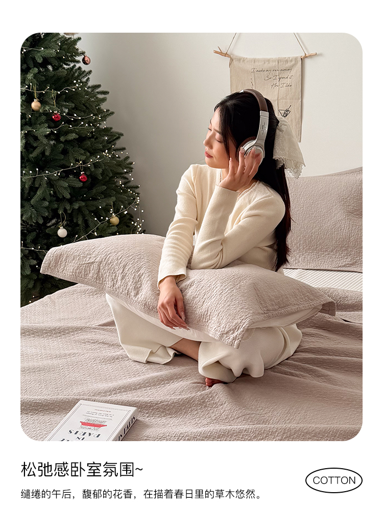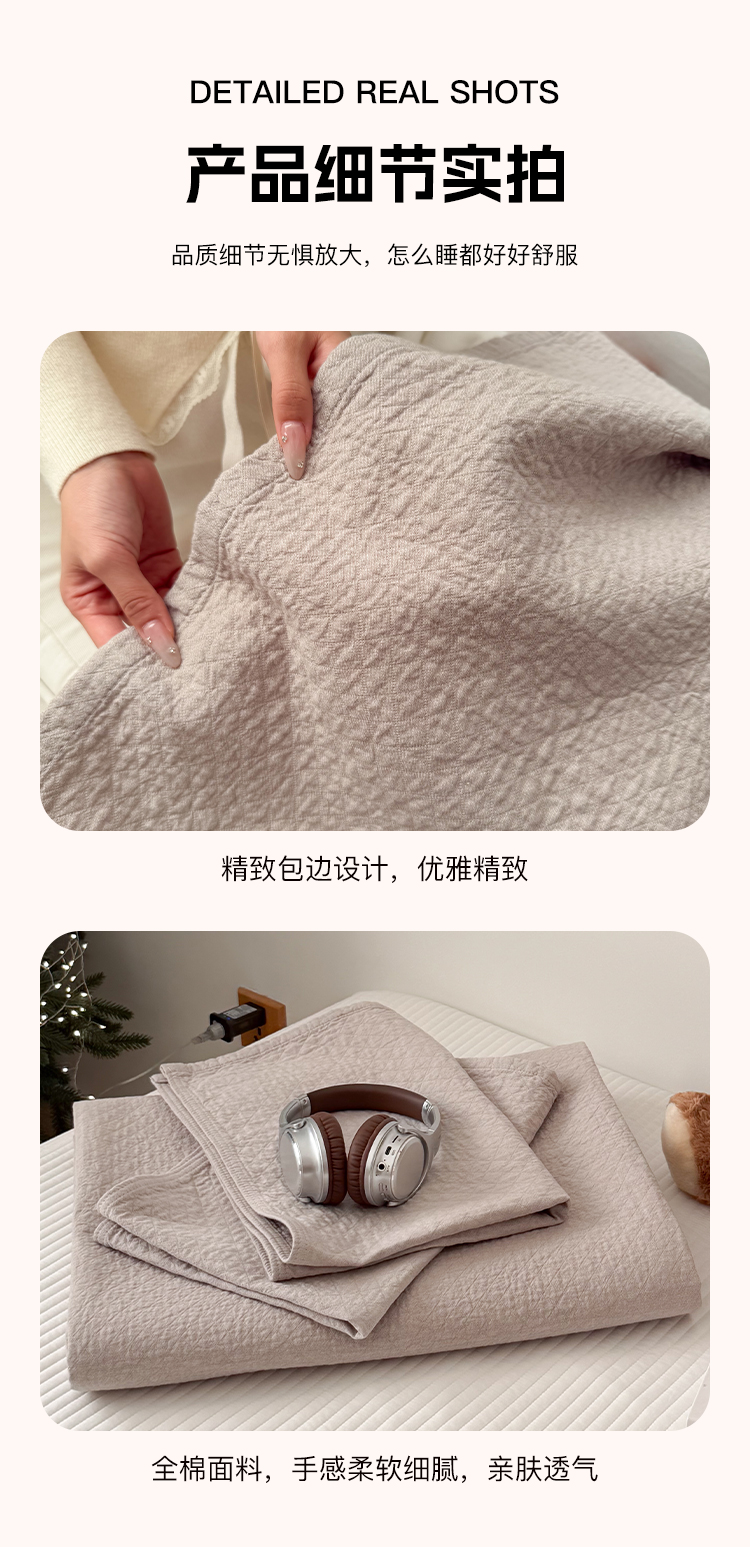 (总)沐瑟家纺 2025新款简约风多功能纱布盖毯纱布毯子毛巾被床盖沙发巾单毯枕巾枕套三件套,H本色,H橙色,H咖色,大马士革本色