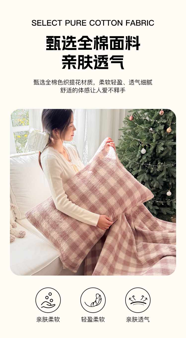 (总)沐瑟家纺 2025新款简约风多功能纱布盖毯纱布毯子毛巾被床盖沙发巾单毯枕巾枕套三件套,H本色,H橙色,H咖色,大马士革本色