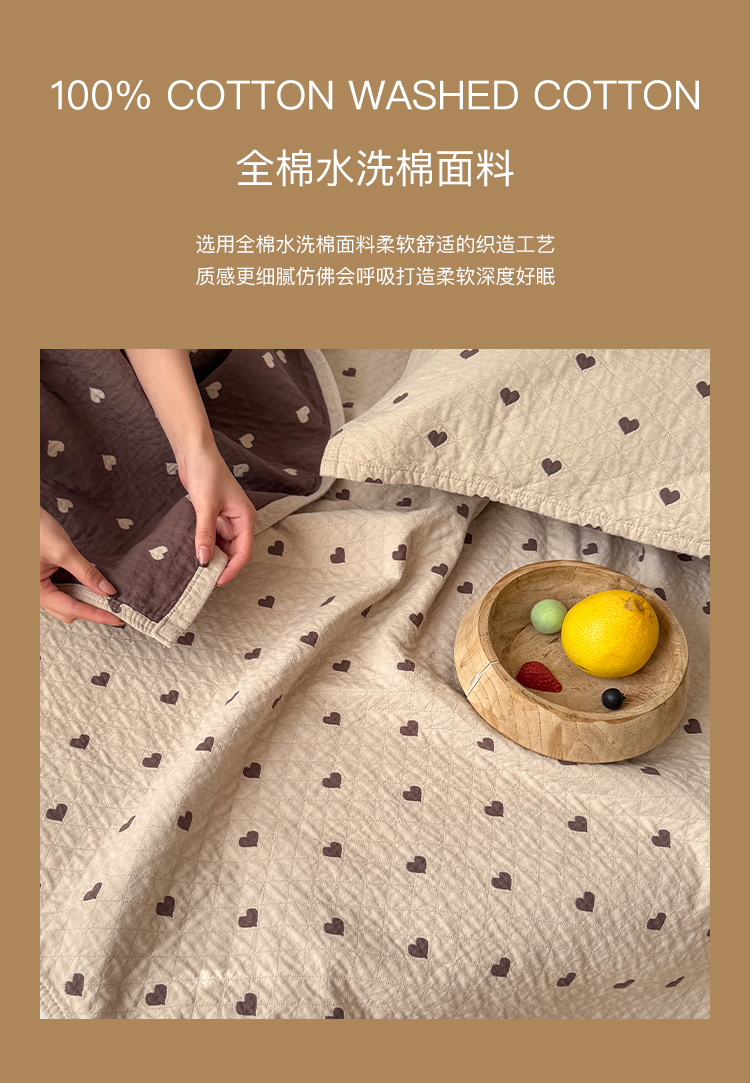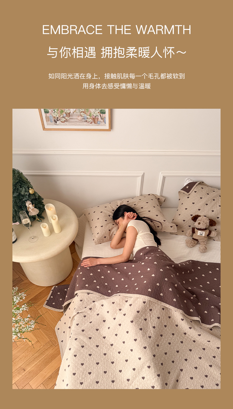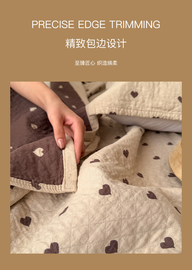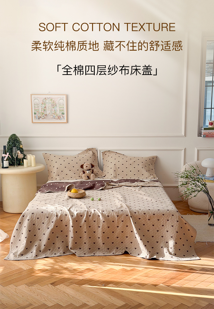 沐瑟家纺 2026新款全棉四层纱布床盖-星星和心情系列 心情-卡其