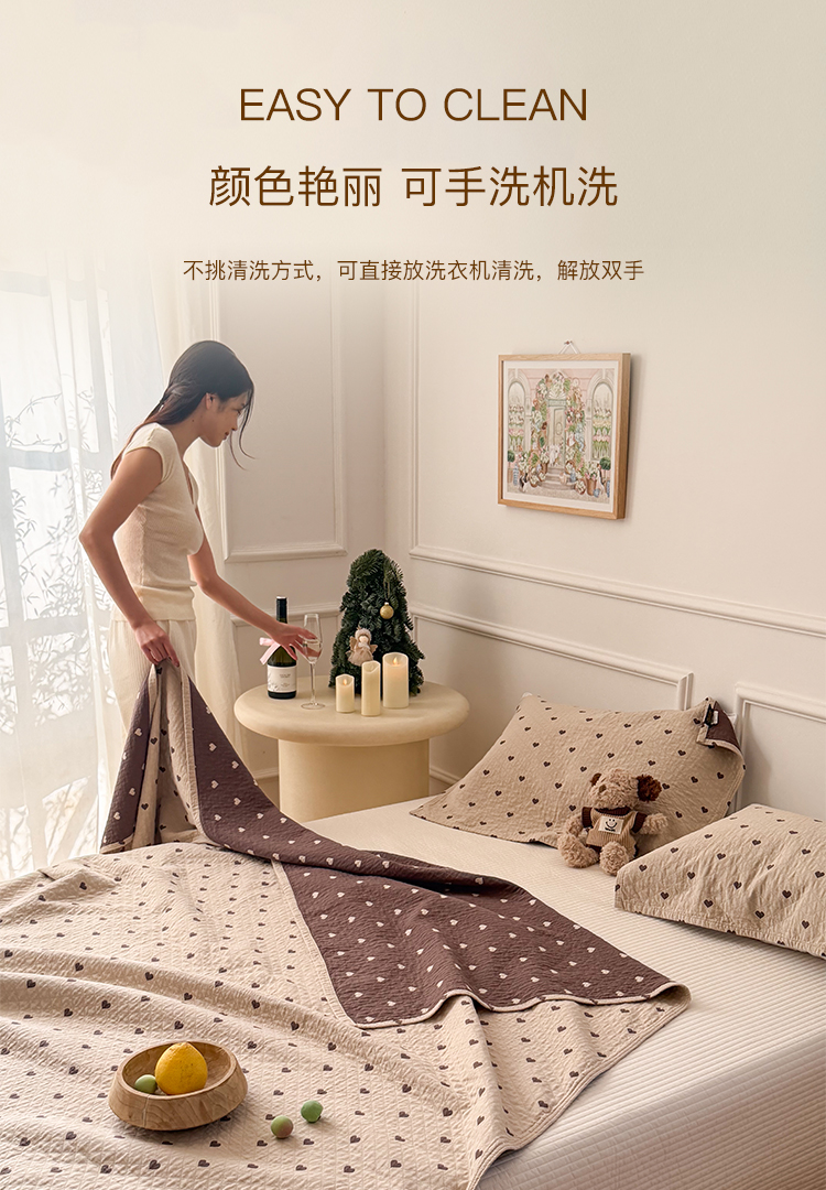 (总)沐瑟家纺 2025新款全棉纱布细纱布大床盖毯子床盖三件套LV系列,LV咖色,春意浓,玫瑰之约,小天鹅-绿,绽放-红色,绽放-姜黄