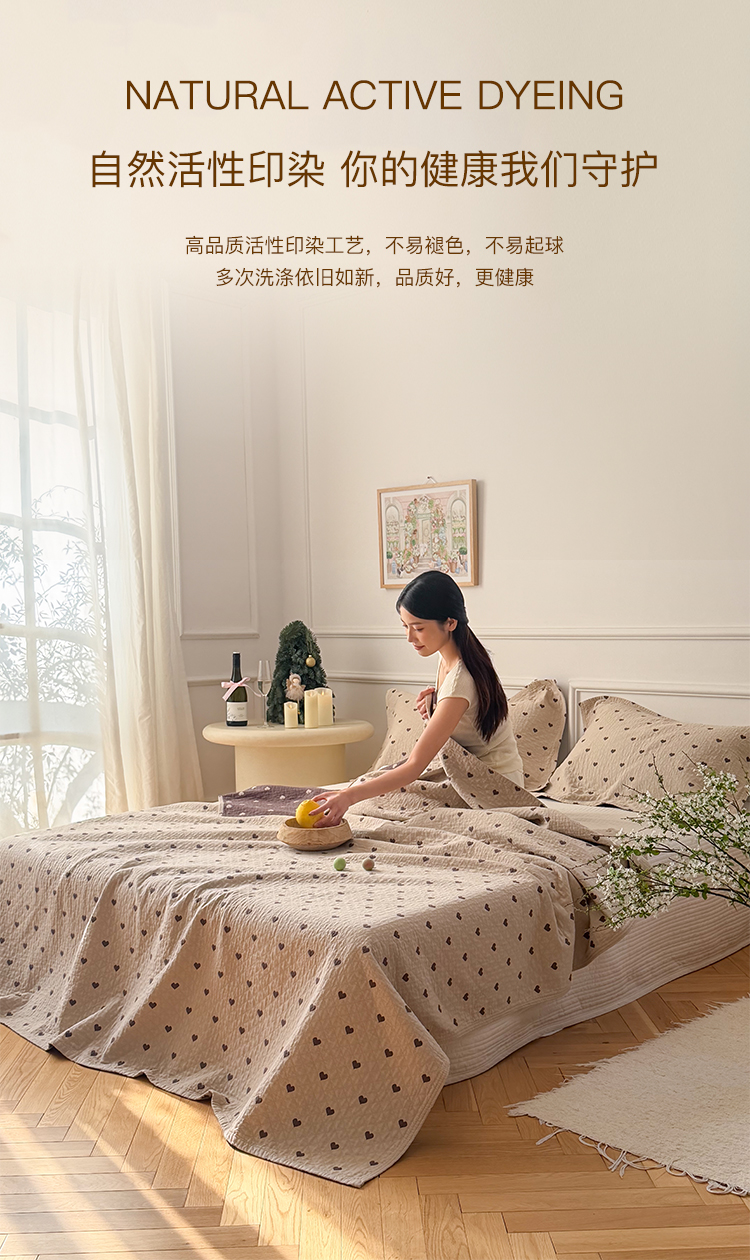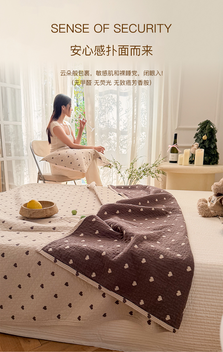 (总)沐瑟家纺 2026新款全棉四层纱布床盖-星星和心情系列,心情-粉色,心情-灰蓝,心情-卡其,星星-黄色,星星-灰色,星星-蓝色,星星-紫色,组合