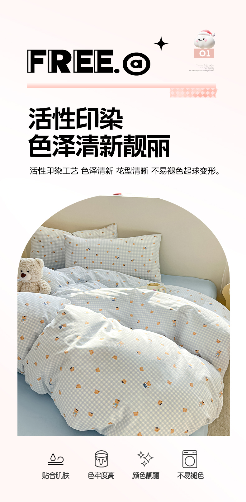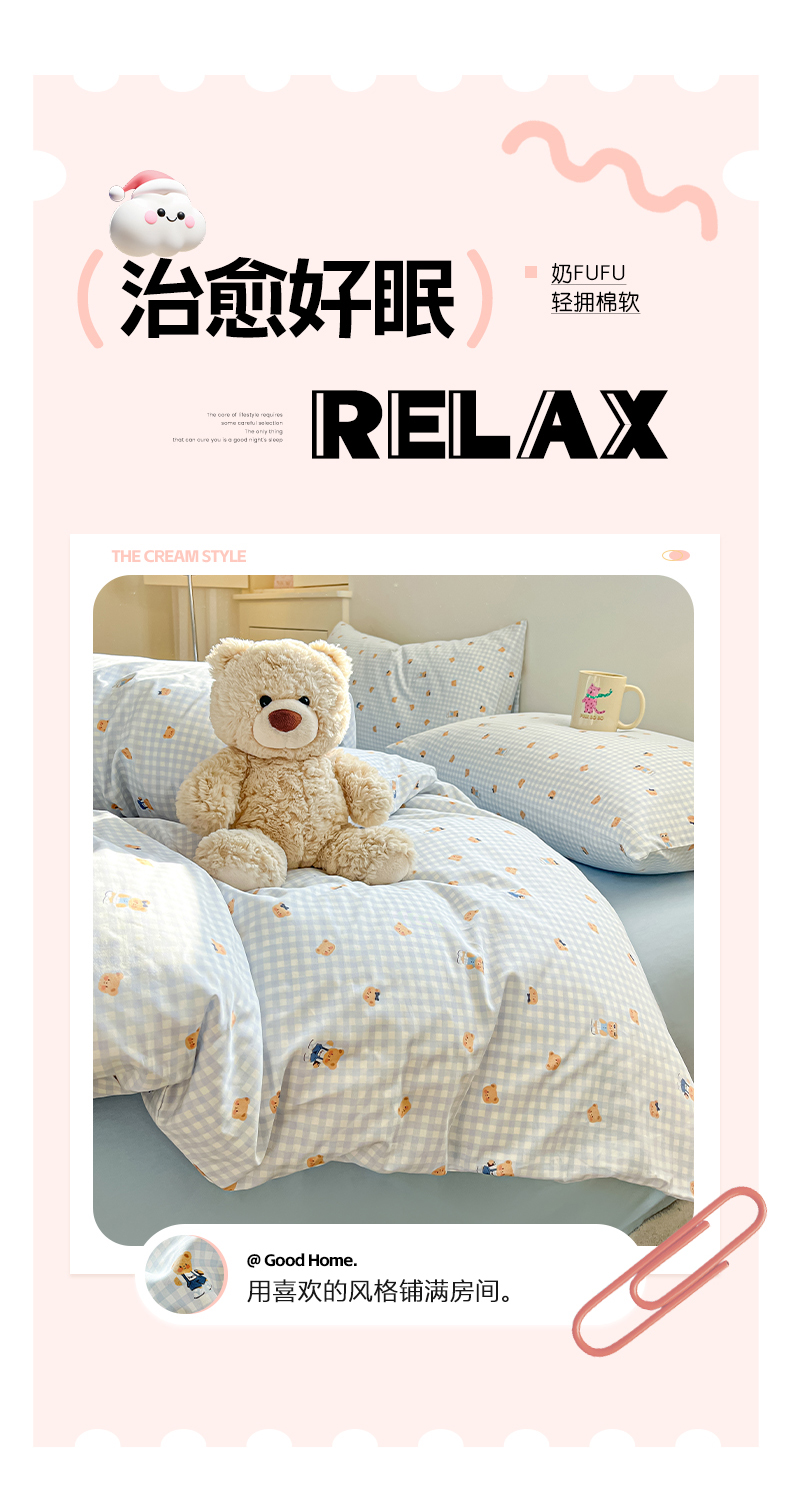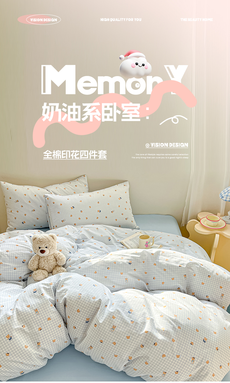 当前位置: 91家纺网 > 商品网购 > 床品套件 > 四件套 > 全棉普通四件套 > 吉象家纺 2026春夏新款全棉纯棉印花四件套 熊熊时光