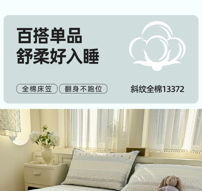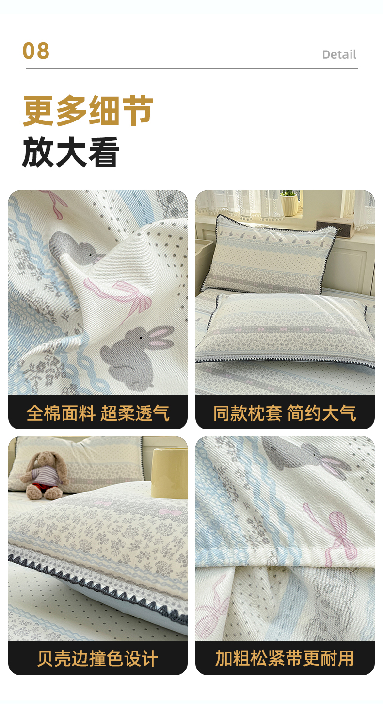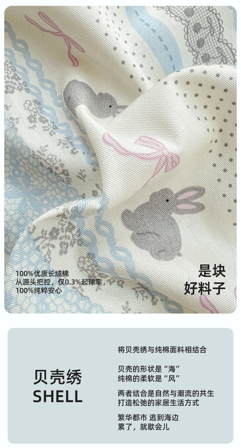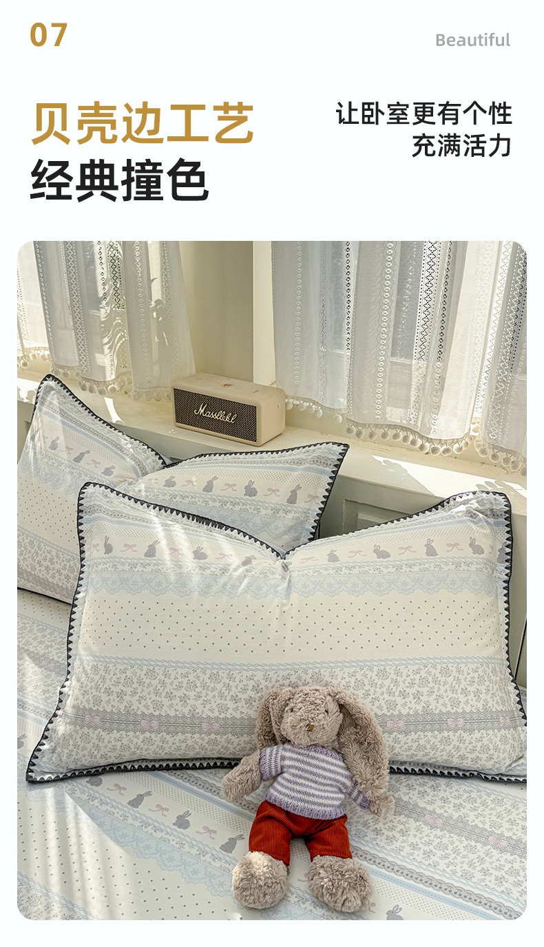 商品名称:浮光家居 2026新款全棉贝壳边纯棉单床笠系列2 花边兔