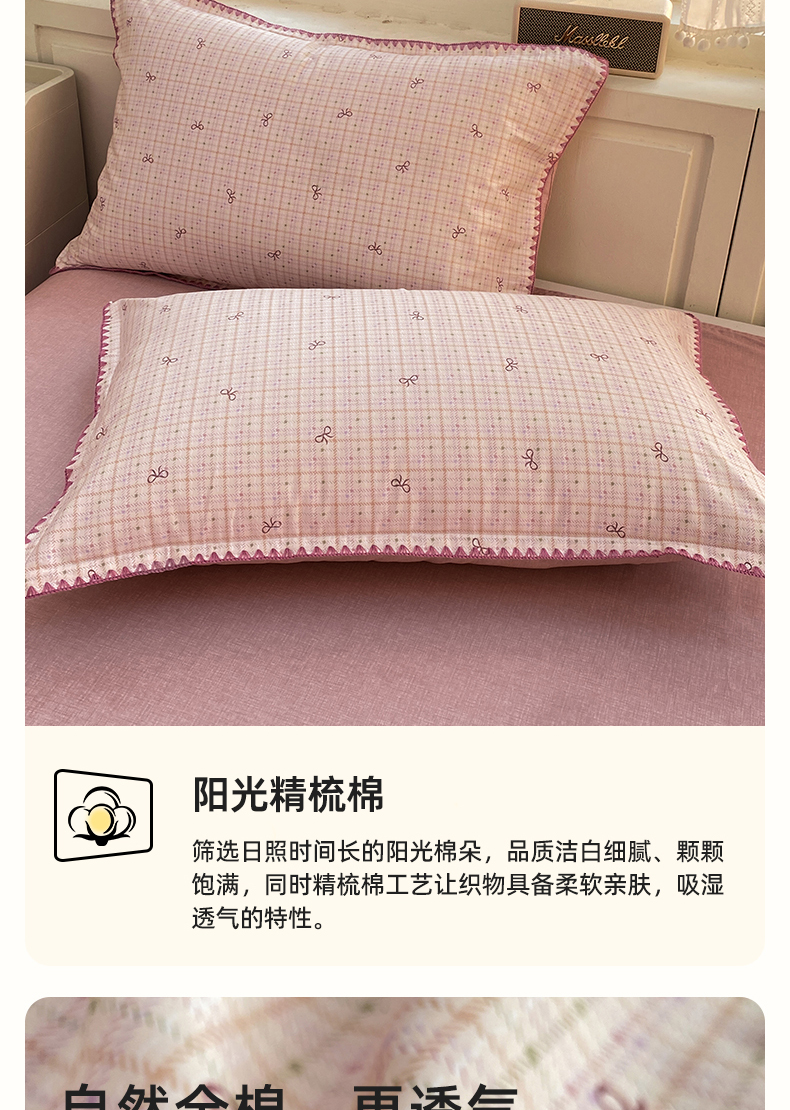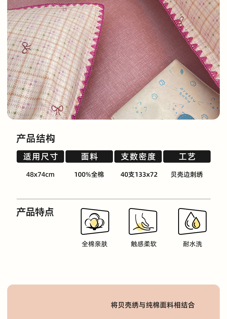 商品名称:浮光家居 2026新款全棉贝壳边纯棉单枕套系列2 星慕