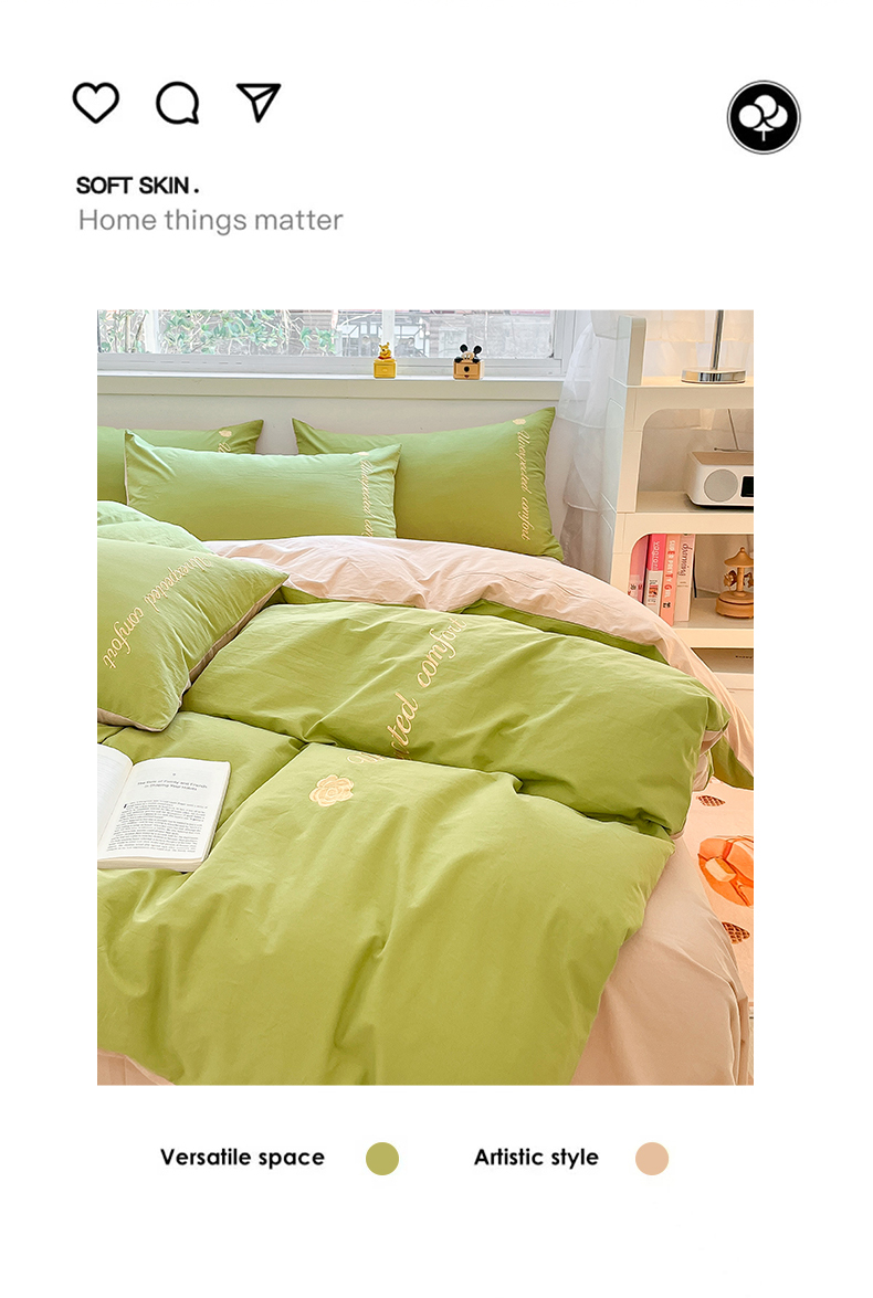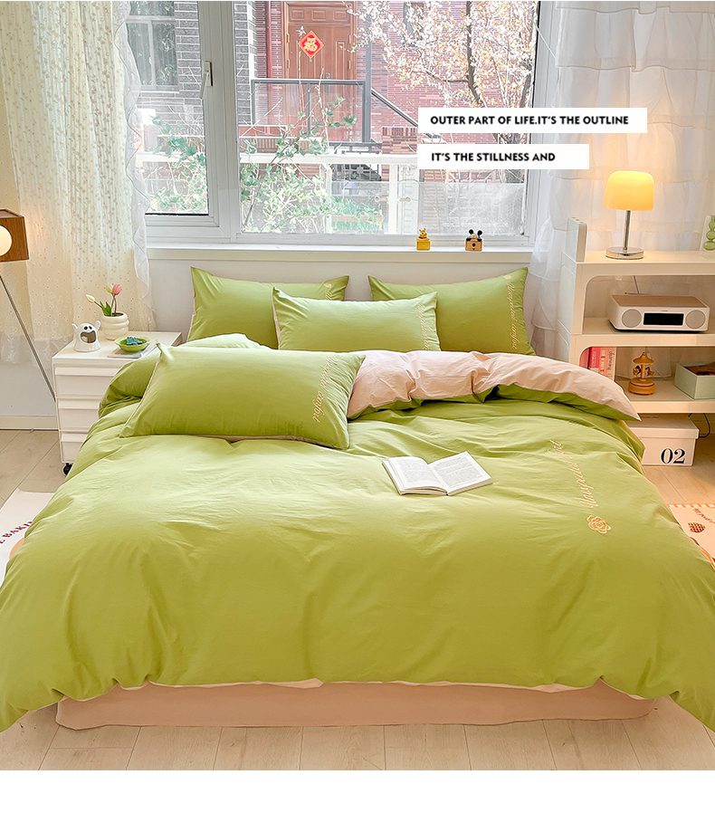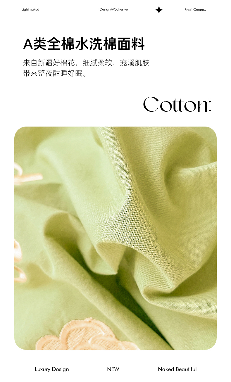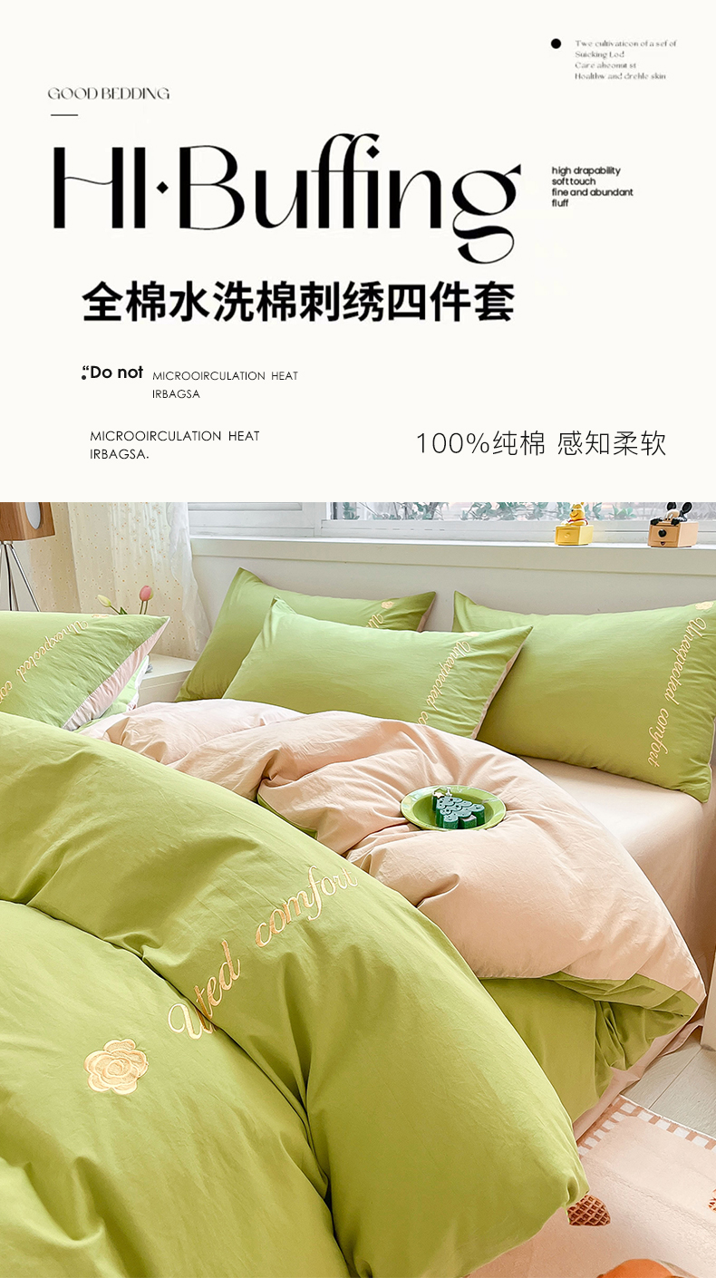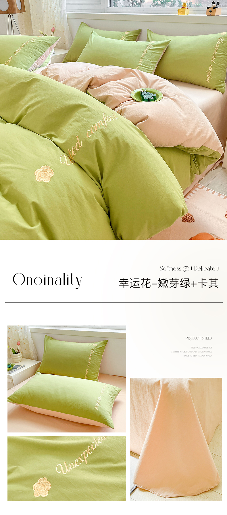 当前位置: 91家纺网 > 商品网购 > 床品套件 > 四件套 > 全棉普通四件套 > 禧澜庭 2026新款纯棉全棉斜纹四件套刺绣绣花款春小清新三件套-幸运花 幸运花-嫩芽绿+卡其