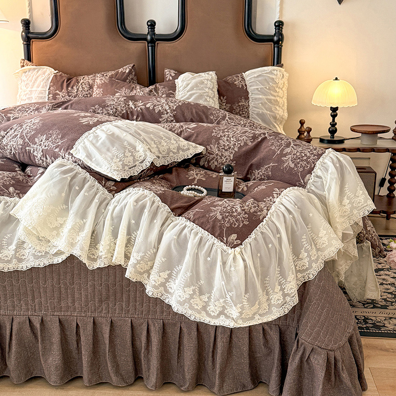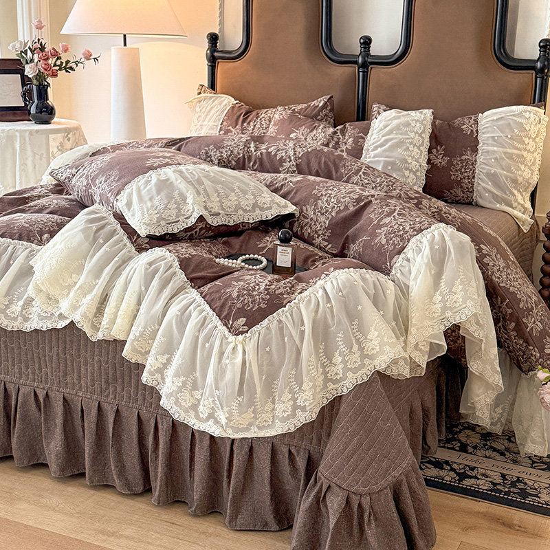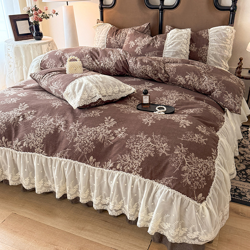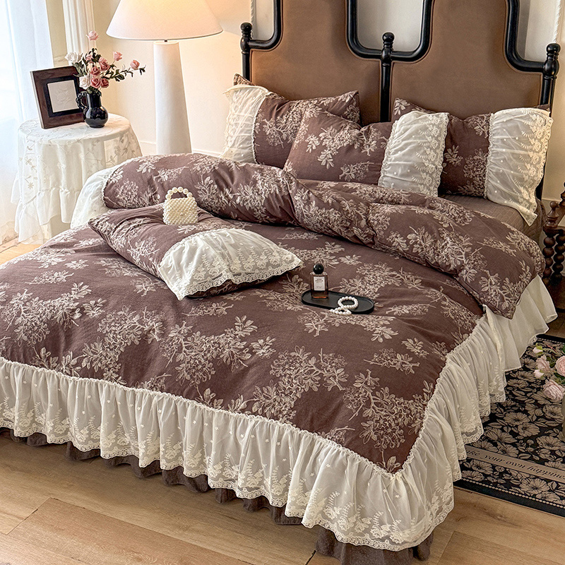 苏米娜2026春夏新款法式复古双层花边大蕾丝水洗棉亚麻床盖款四件套全棉纯棉印花小碎花四件套 罗拉
