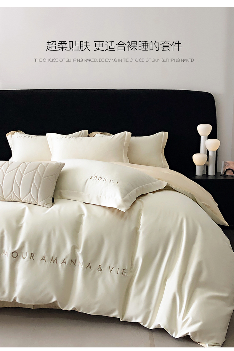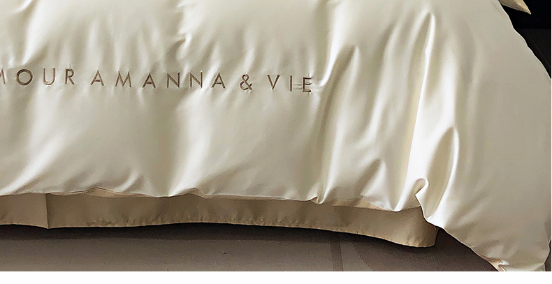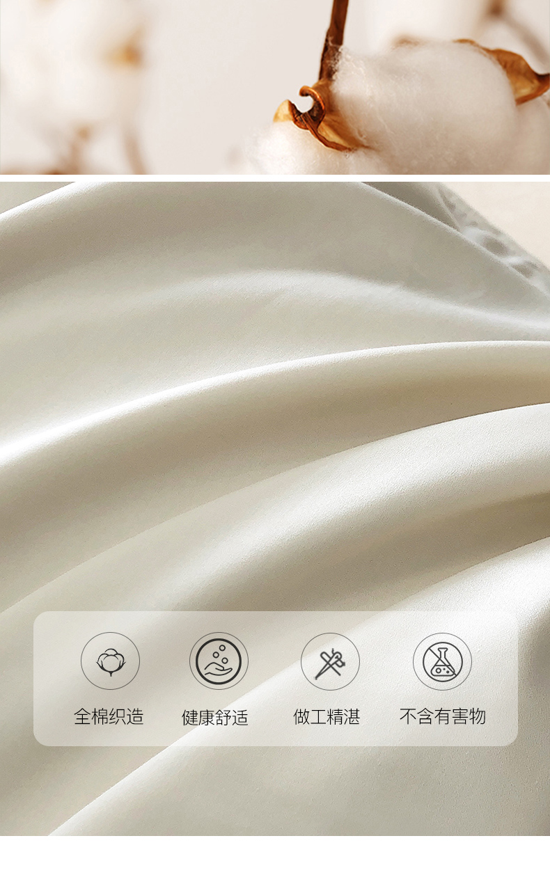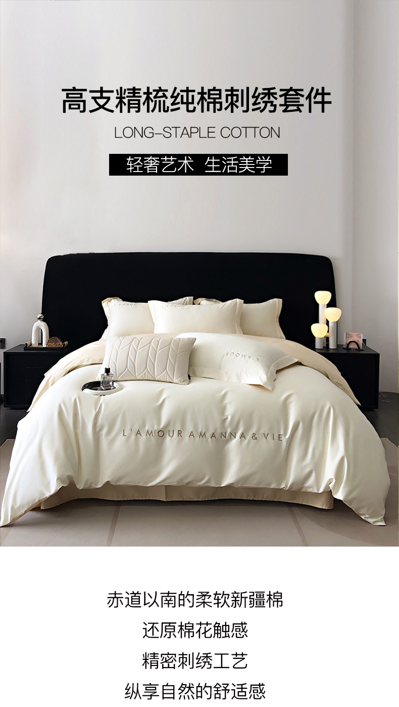 商品名称:禧澜庭 2026新款高支纯棉全棉斜纹四件套刺绣绣花款轻奢三件套--简爱系列 贵族白+香槟