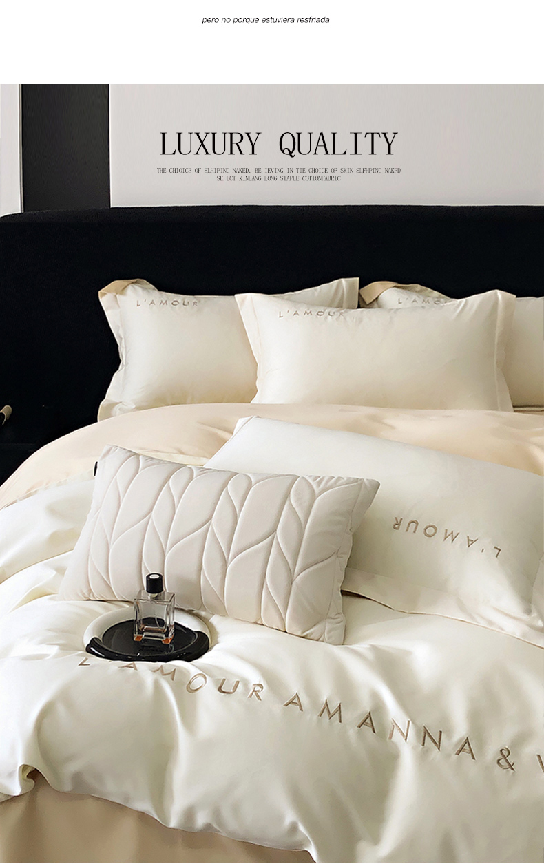 禧澜庭 2026新款高支纯棉全棉斜纹四件套刺绣绣花款轻奢三件套--简爱系列 贵族白+香槟