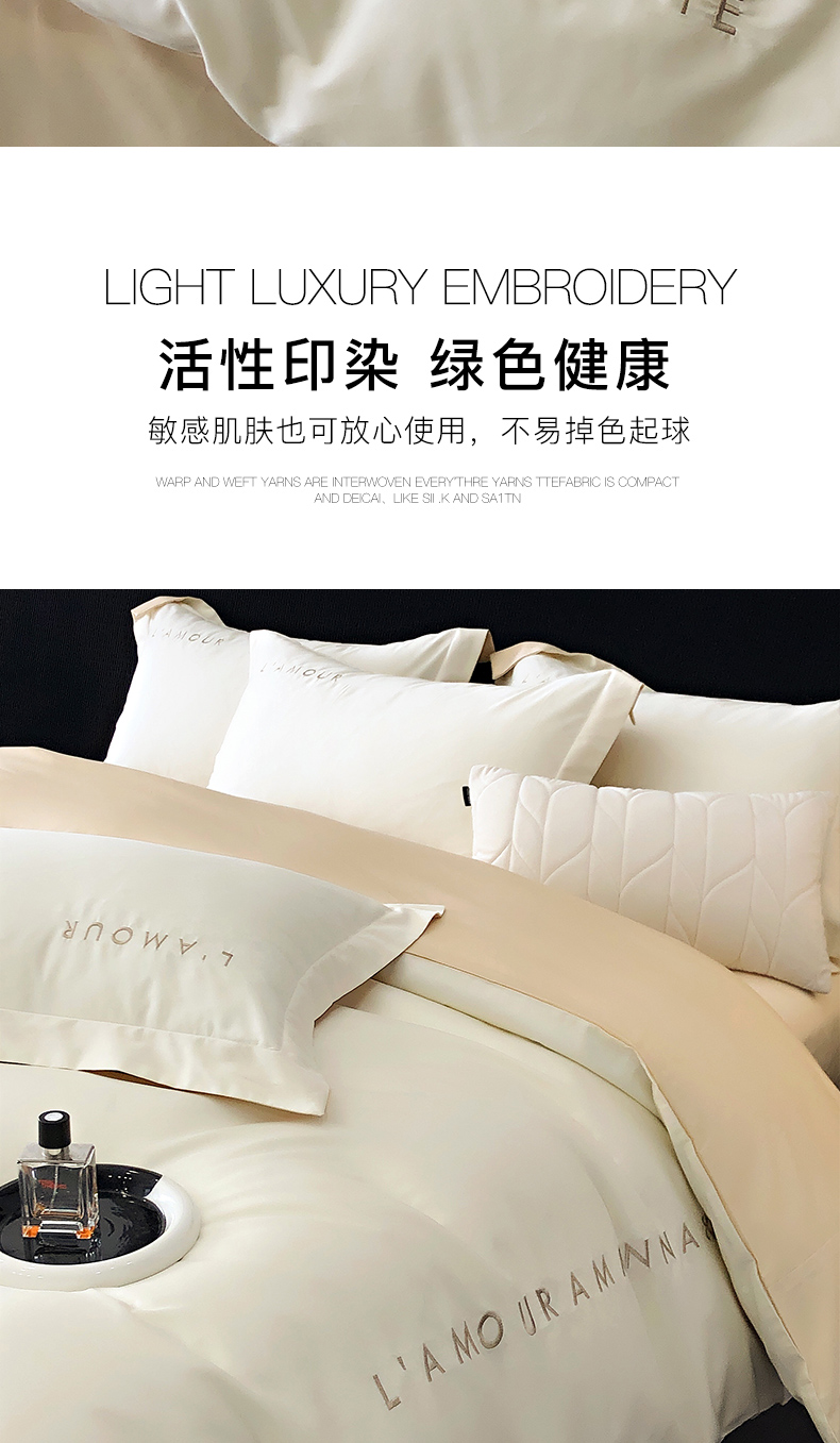 (总)禧澜庭 2024新款纯棉全棉斜纹四件套埋线轻奢三件套,艾玉粉,帝都灰,和风蓝,焦糖橙,米卡其,维克绿