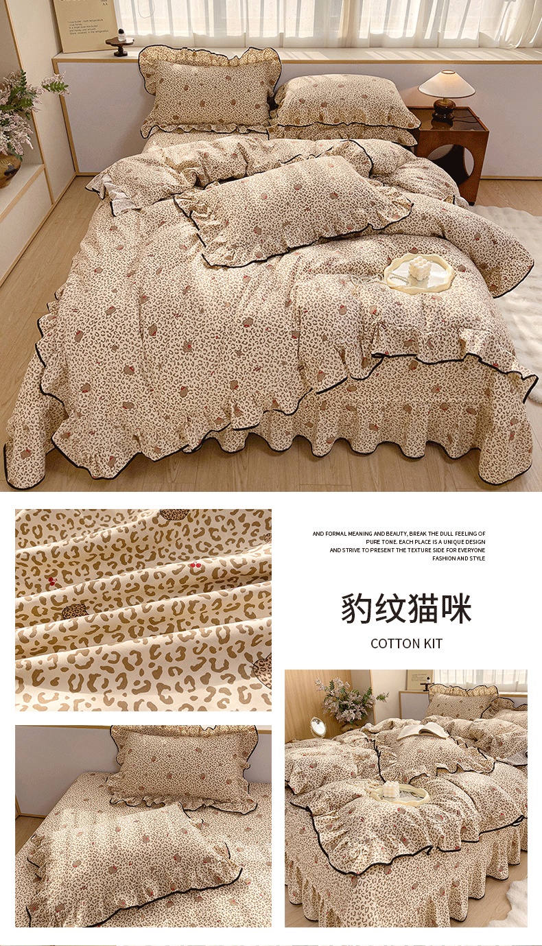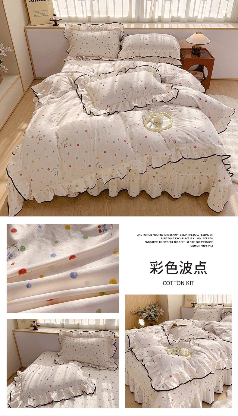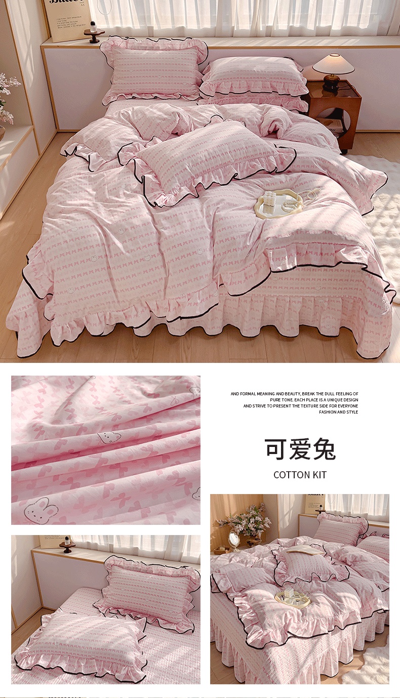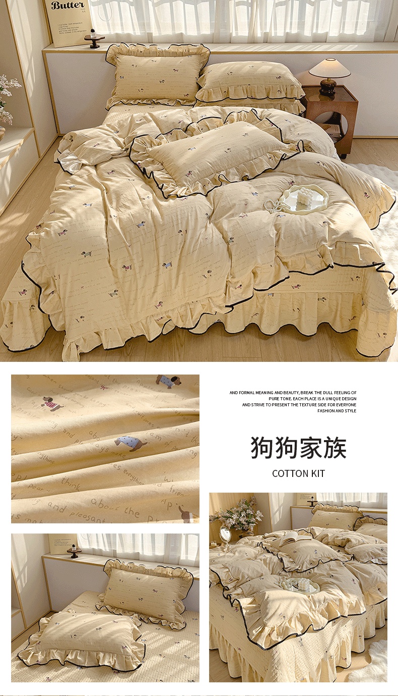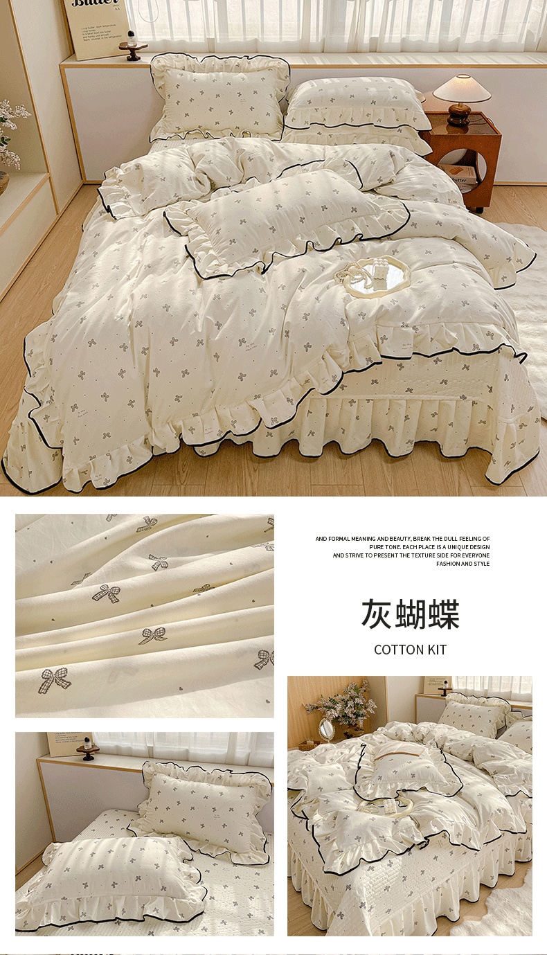 (总)赛丽雅 2026春夏新款古法水洗棉法式花边床盖四件套,KT猫-粉,豹纹猫咪,波点,彩色波点,狗狗家族,花田错,灰蝴蝶,可爱兔,兰黛,蓝纹小熊,漫花蝶舞,木马乐园,暖兔,苹果乐园,七分甜,甜星人