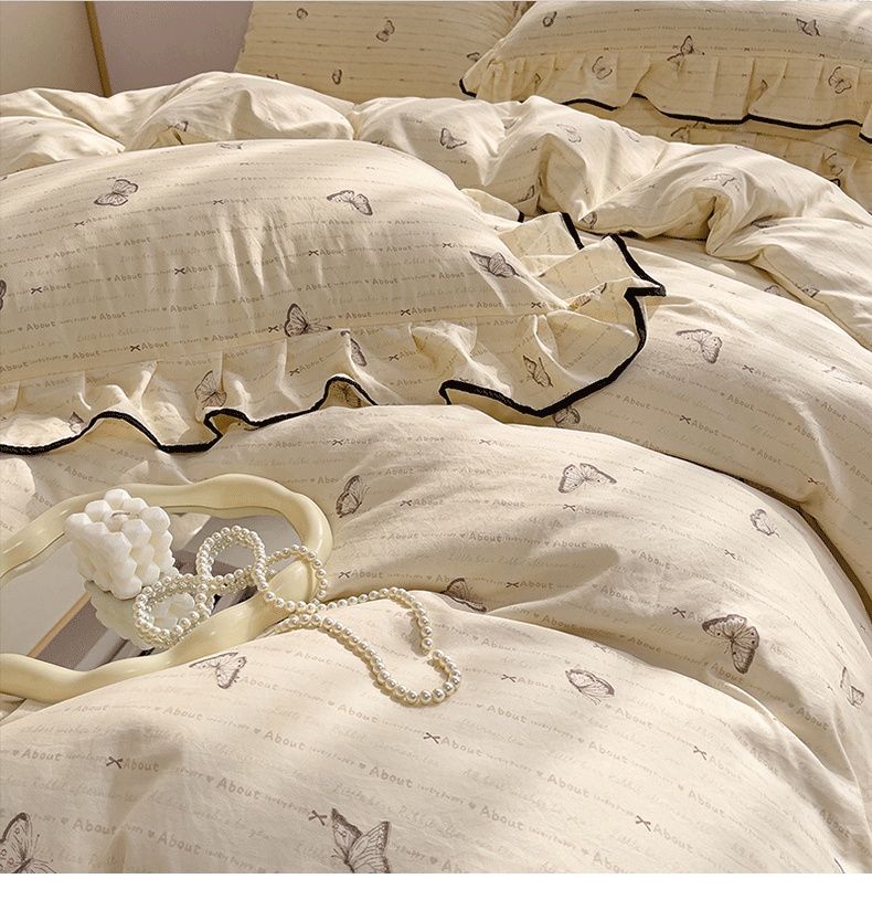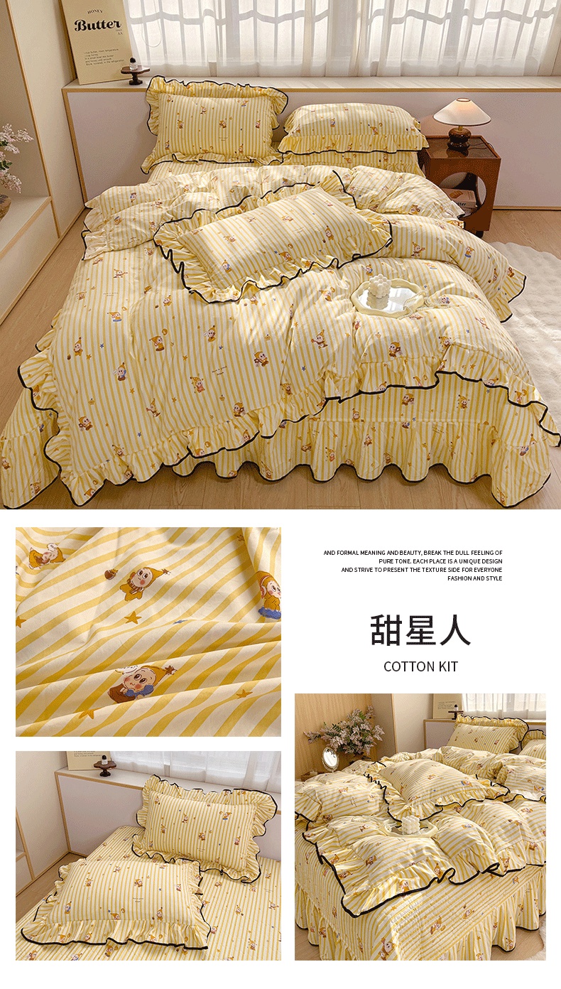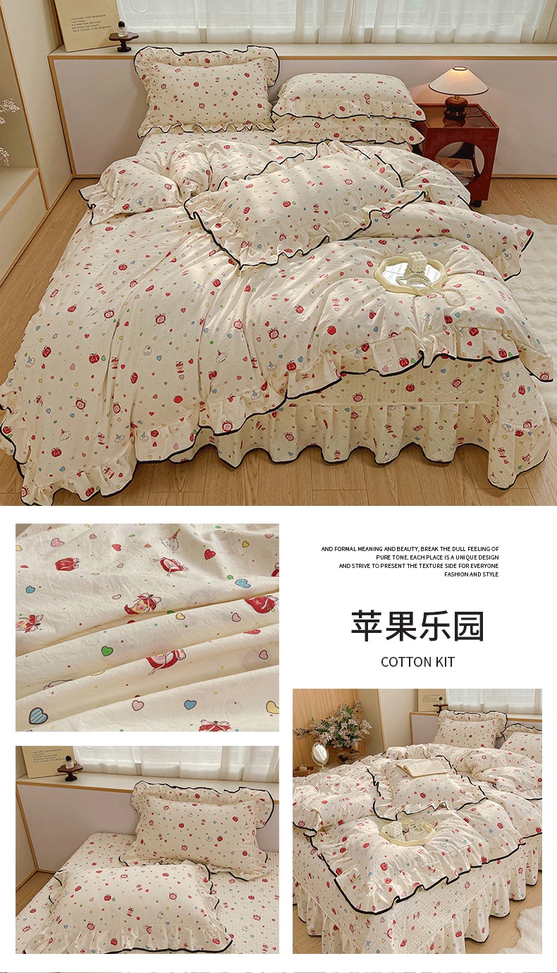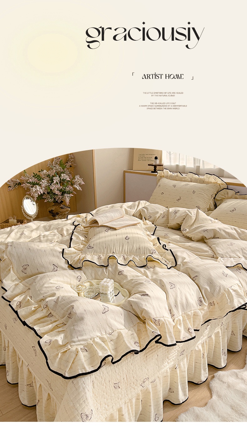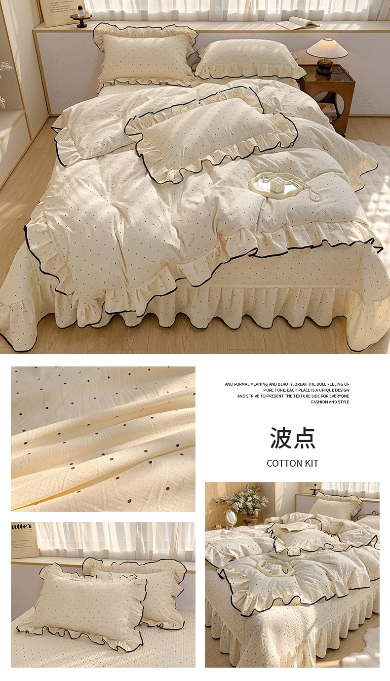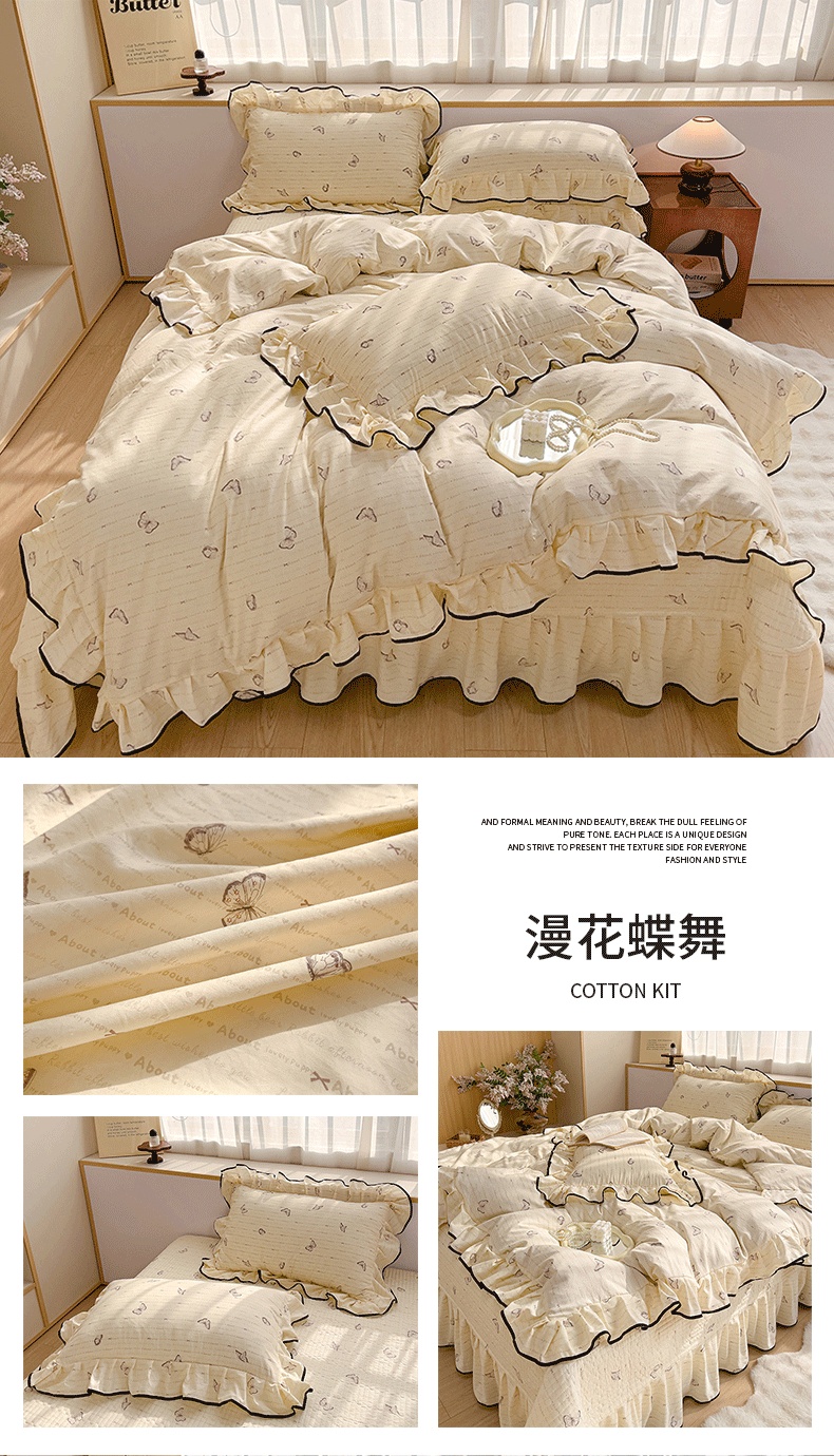 (总)赛丽雅 2026春夏新款古法水洗棉法式花边床盖四件套,KT猫-粉,豹纹猫咪,波点,彩色波点,狗狗家族,花田错,灰蝴蝶,可爱兔,兰黛,蓝纹小熊,漫花蝶舞,木马乐园,暖兔,苹果乐园,七分甜,甜星人