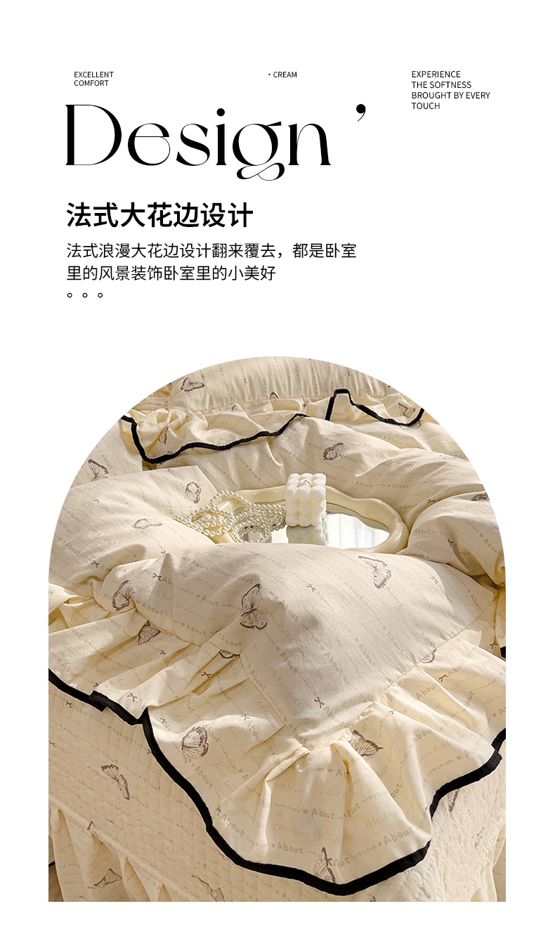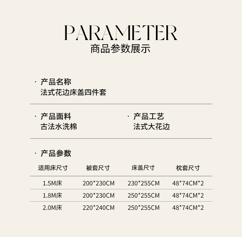 商品名称:(总)赛丽雅 2026春夏新款古法水洗棉法式花边床盖四件套