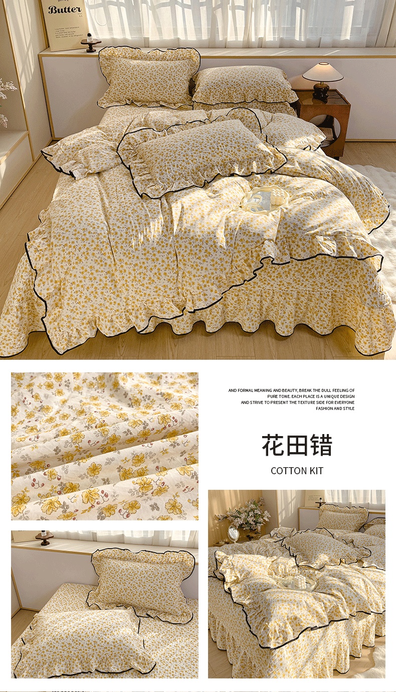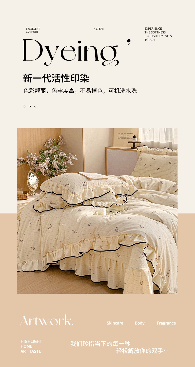 (总)赛丽雅 2026年新款直播爆款双层花边拼接蝴蝶结工艺款四件套床上用品,南法假日-姜黄,南法假日-桃粉,南法假日-天空蓝,南法假日-仙草绿
