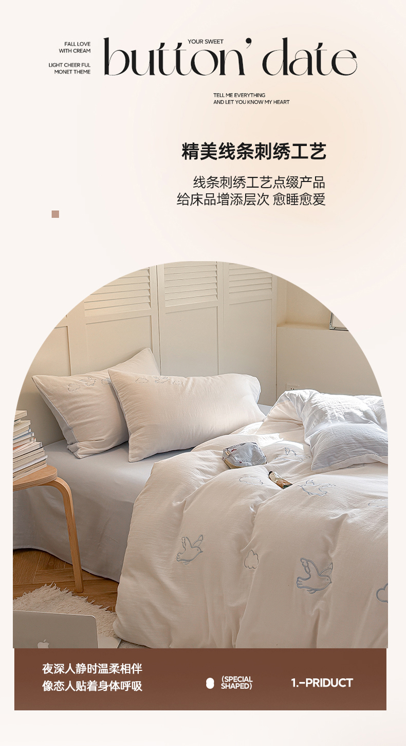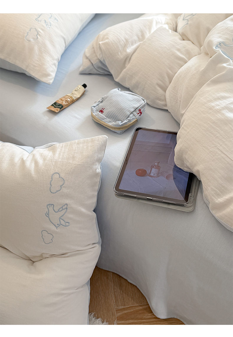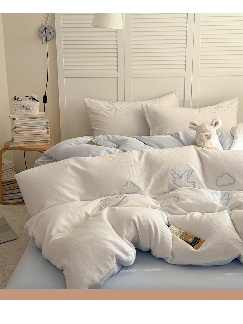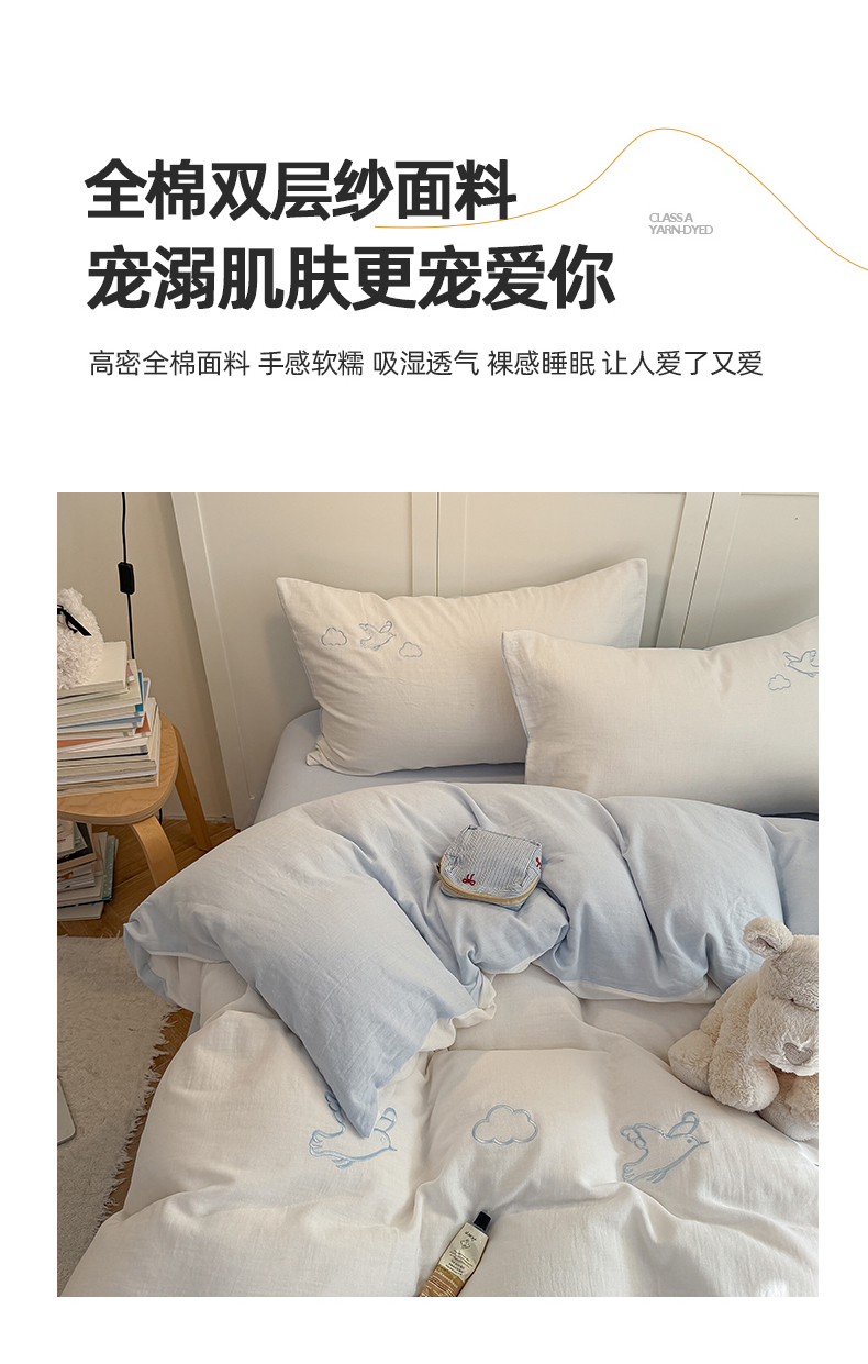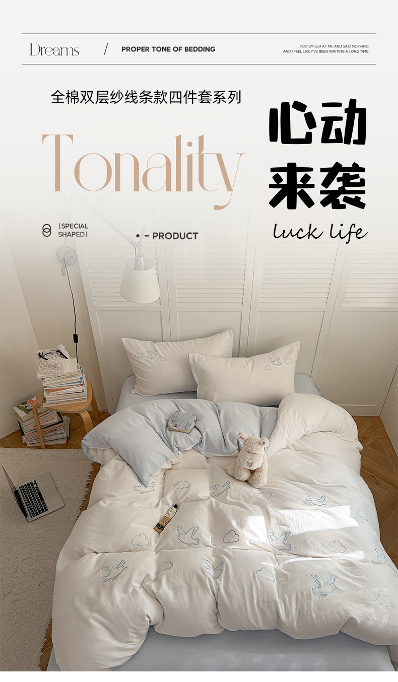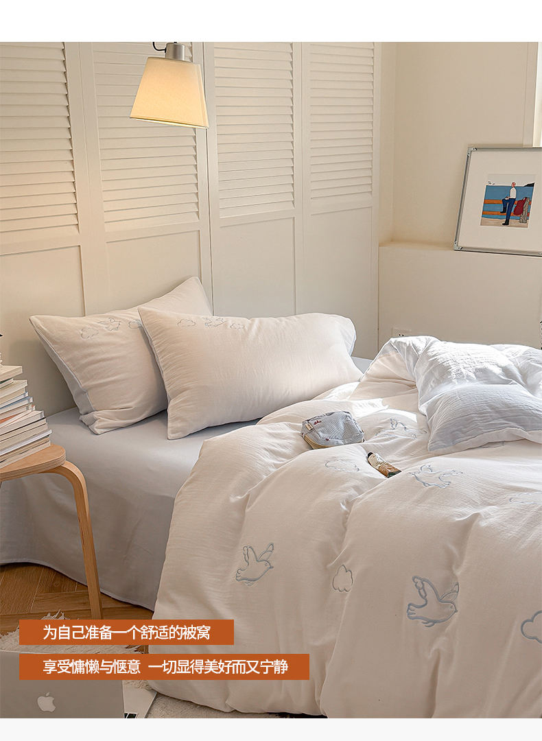 当前位置: 91家纺网 > 商品网购 > 床品套件 > 四件套 > 全棉普通四件套 > FORTWO家纺原创设计(FOR TWO家纺) 2026新款全棉双层纱四件套--线条款(会员-15 控价:(券前)基础价不低于小号248元,中号328元,大号348元 床笠加10元) 云朵海鸥
