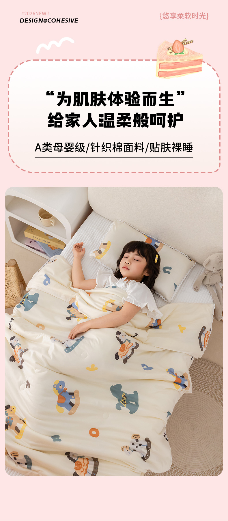 (总)心卓婴童馆 2026春夏新款云感棉四季被大豆被被子被芯,白底星星,彩色南瓜,点点熊,粉豹纹,粉格子小猫,红色樱桃,梦幻乐园,碎花小兔,棕色豹纹