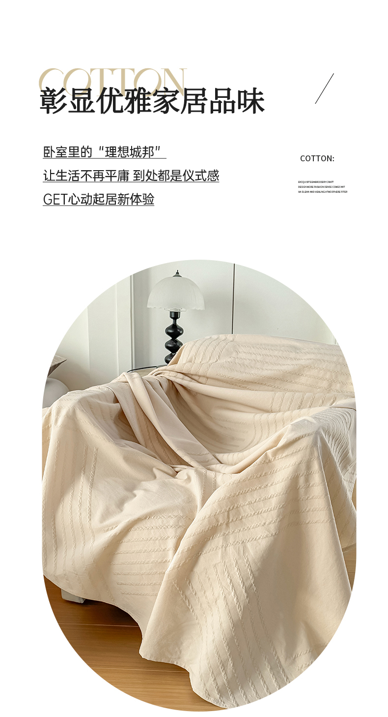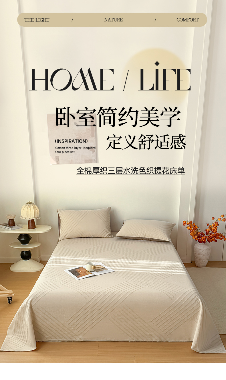 商品名称:女子家纺 2026新款全棉厚织三层水洗色织提花床单 云汐-可可奶咖