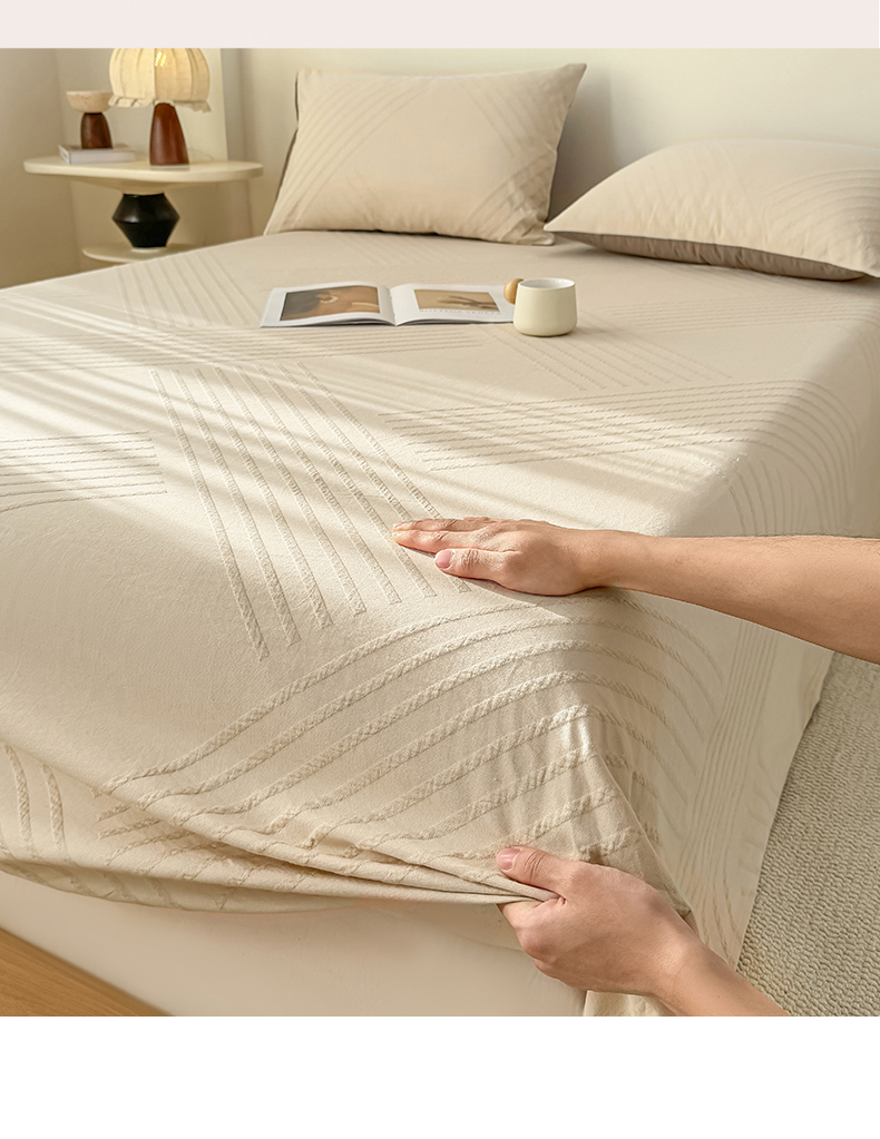 女子家纺 2026新款全棉厚织三层水洗色织提花床单 云汐-可可奶咖