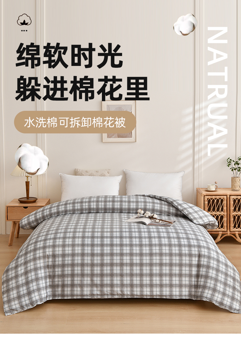 当前位置: 91家纺网 > 商品网购 > 被子 > 棉被 > 织雅漫 2026新款可拆洗水洗棉单被套被套单件 青灰