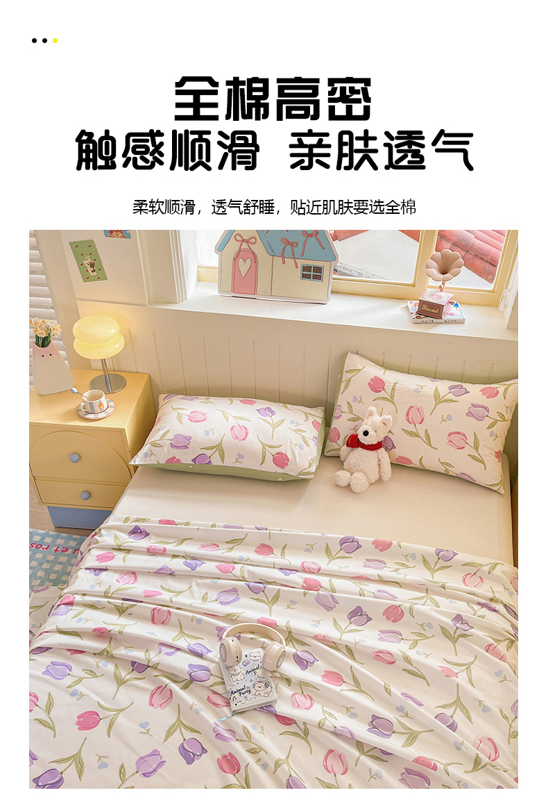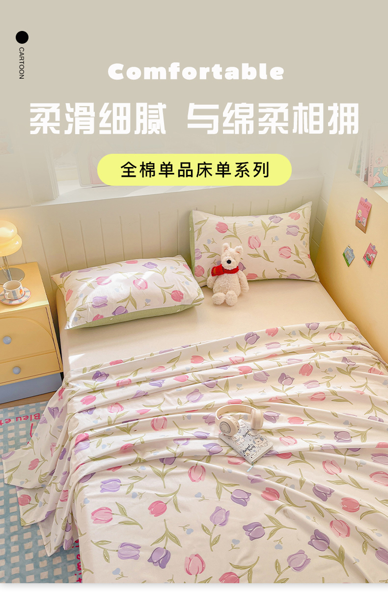 瑞莱 2026新款纯棉全棉单品印花卡通床单枕套系列 绽放
