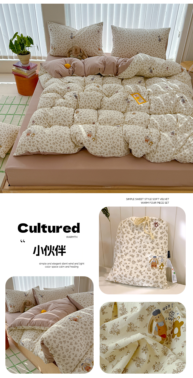 (总)铺尚美家纺 2026新款A类古法水洗仿棉云感纱四件套,萌兔小熊,安娜,波点熊,布丁狗,草莓啵啵,草莓熊-粉,草莓熊-蓝,丁香紫,格纹萌友团,格子熊,狗狗乐园,乖乖狗-灰,乖乖狗-玉,花园小猫,猫狗狂欢夜,玫瑰庄园,莫兰迪,奶绿牛油果,蔷薇花语,条纹小熊,小马星河,小奶团,星芒啵啵熊,雪花世界,英伦小木马,紫罗兰