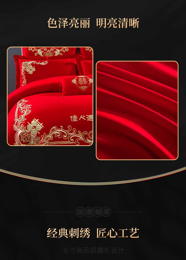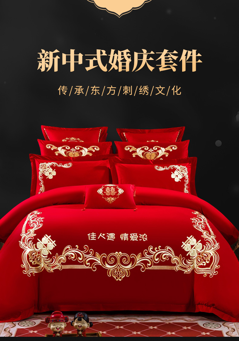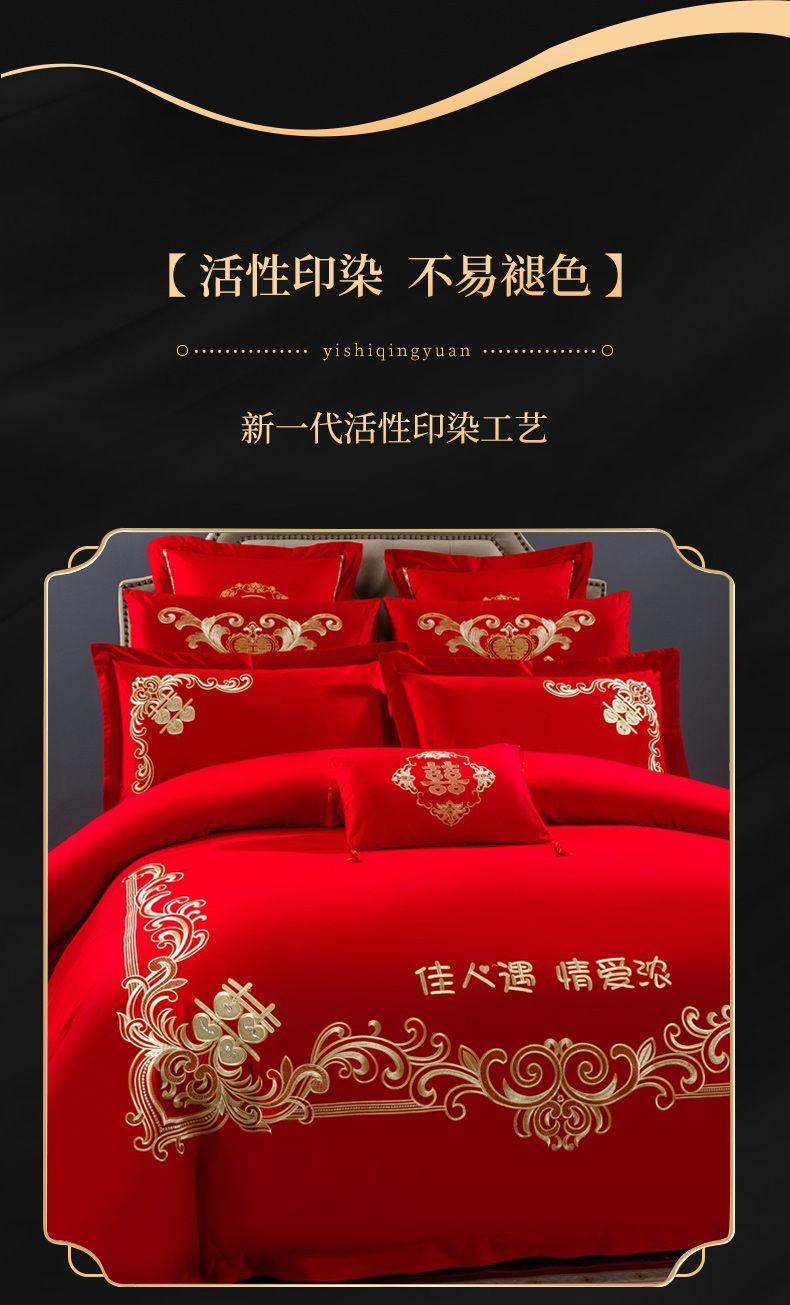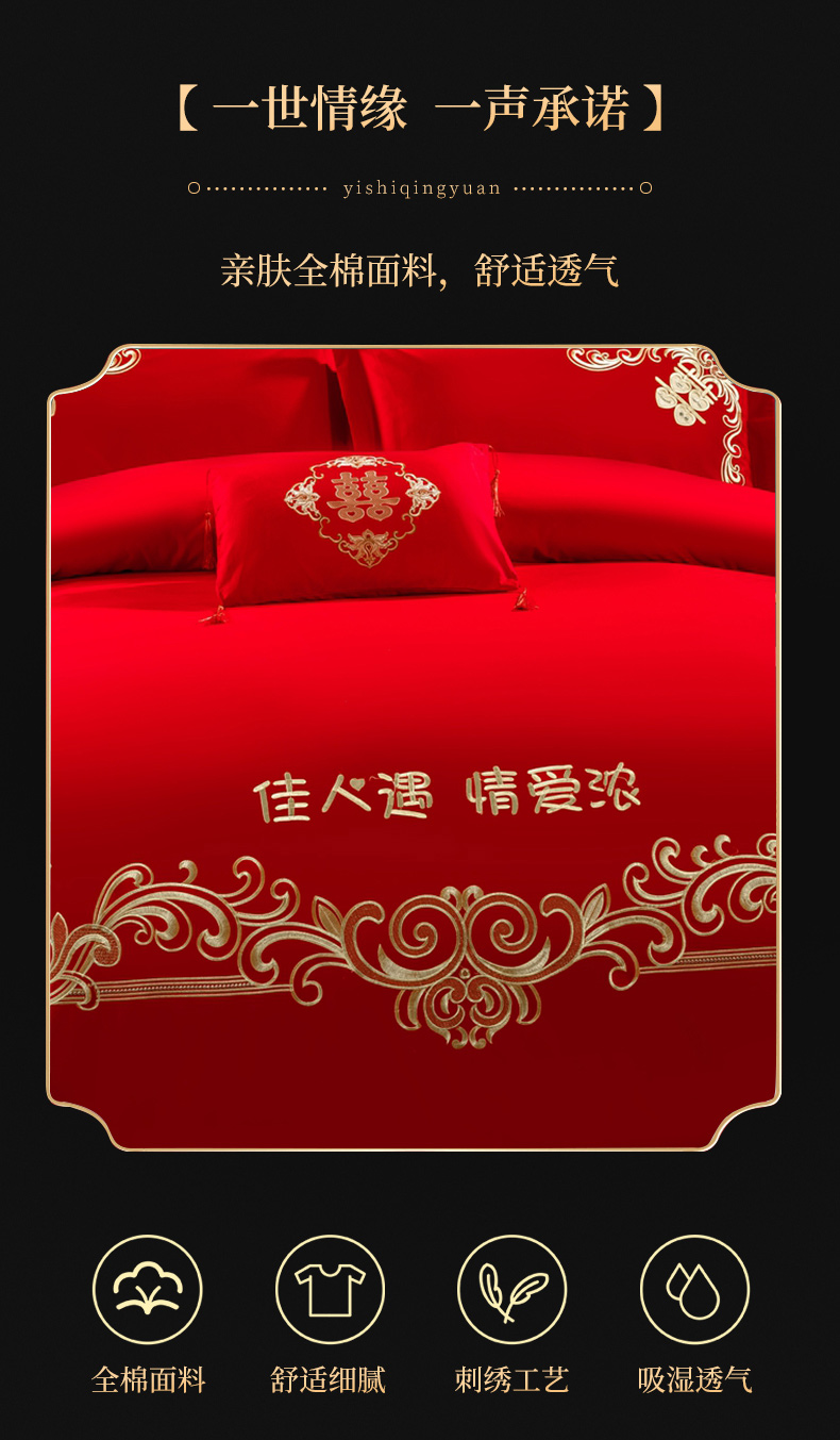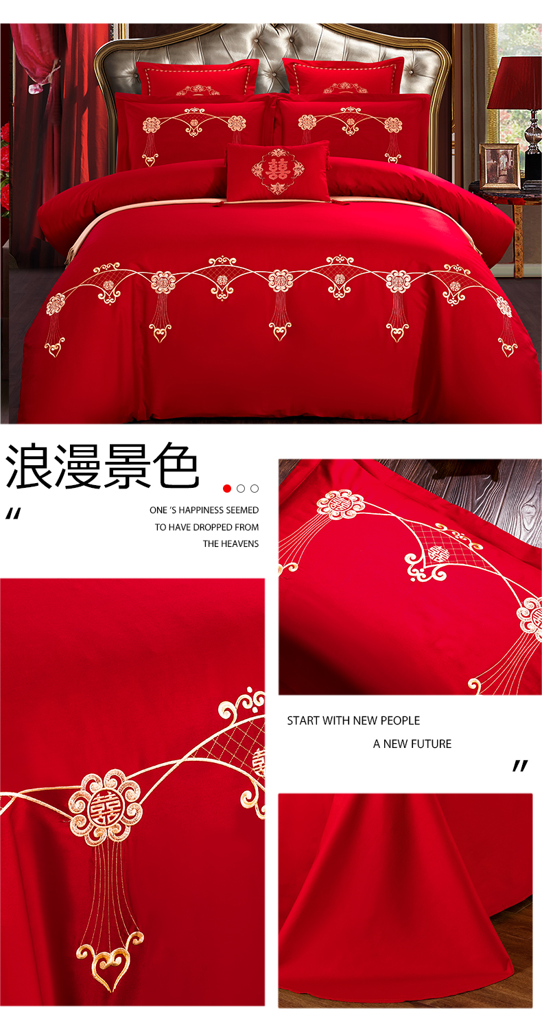 当前位置: 91家纺网 > 商品网购 > 床品套件 > 四件套 > 婚庆四件套 > 慕她家纺 慕她畅销款全棉纯棉婚庆四件套大红色刺绣结婚床上用品 佳人情浓