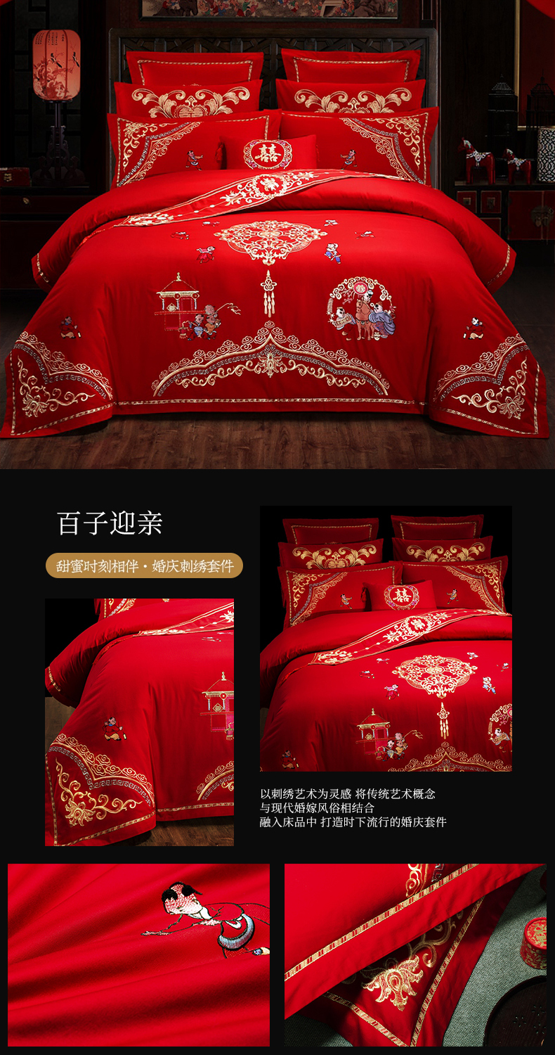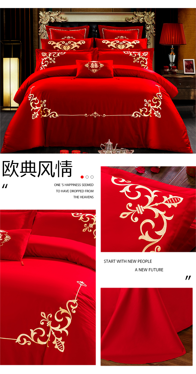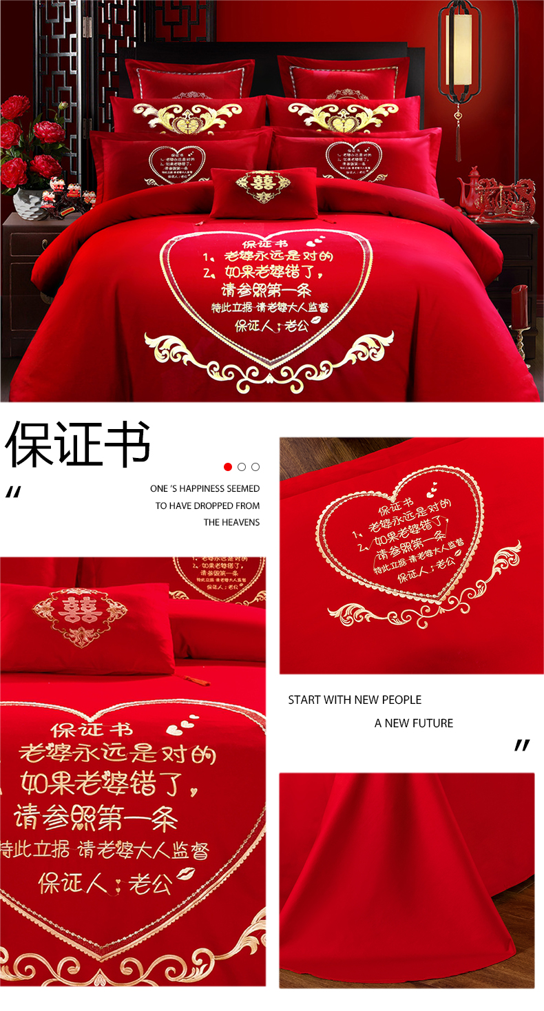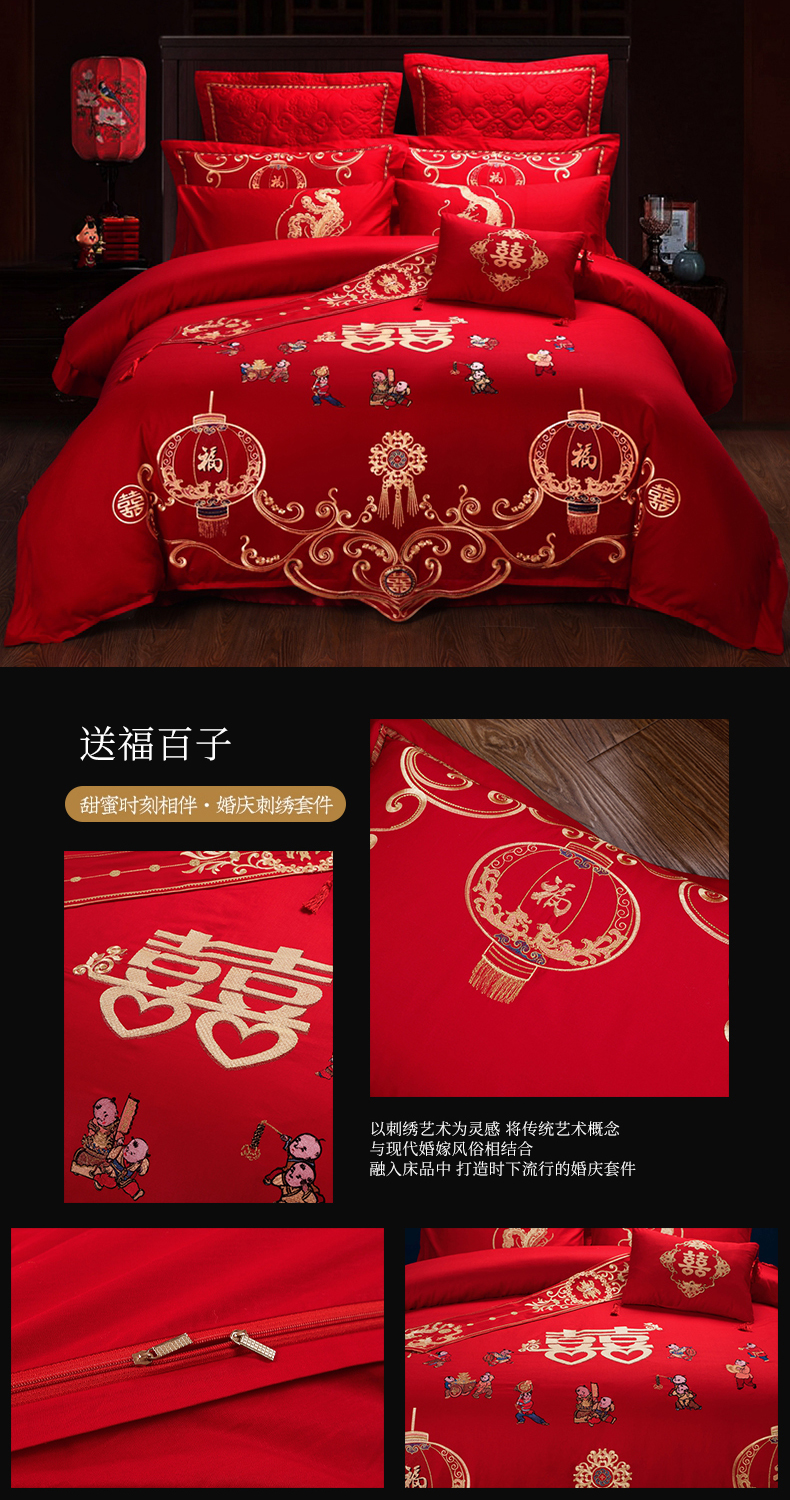 当前位置: 91家纺网 > 商品网购 > 床品套件 > 四件套 > 婚庆四件套 > 慕她家纺 慕她畅销款全棉纯棉婚庆四件套大红色刺绣结婚床上用品 佳人情浓