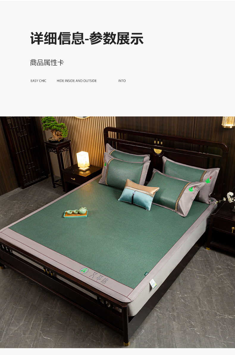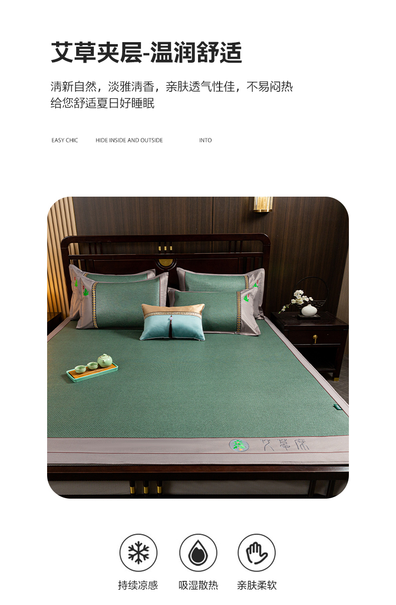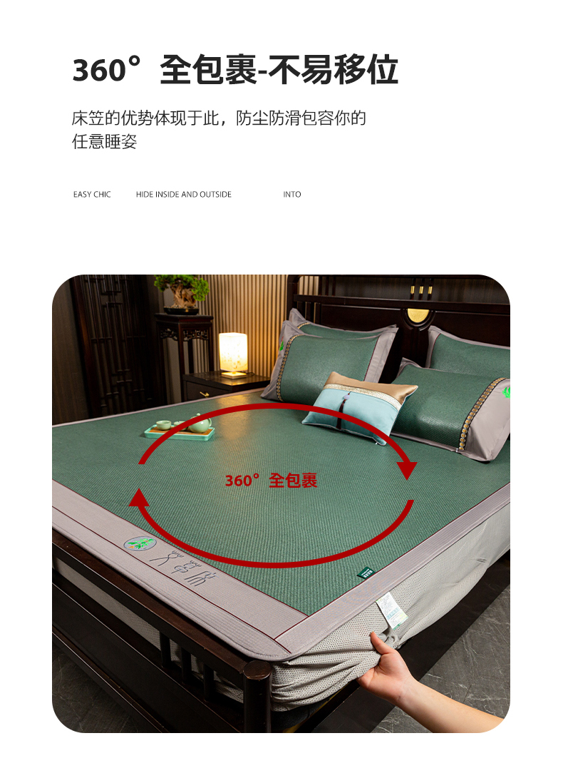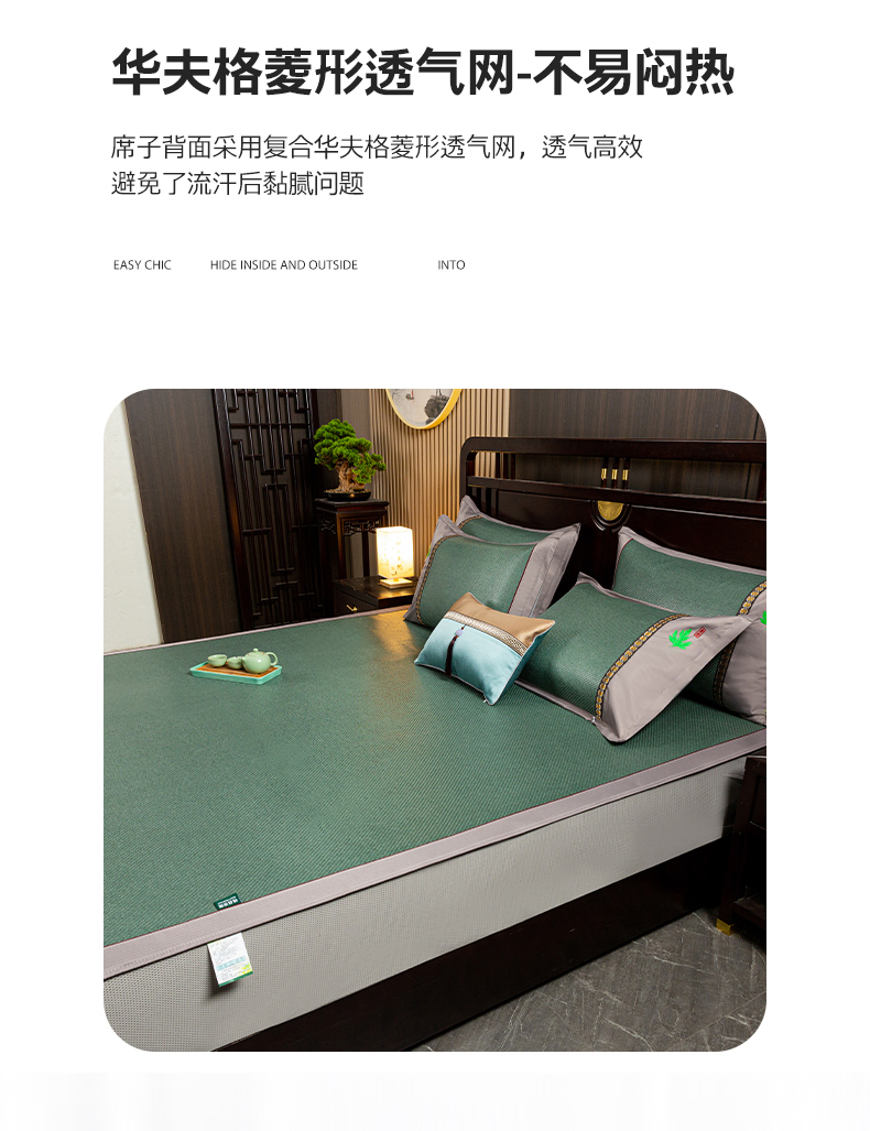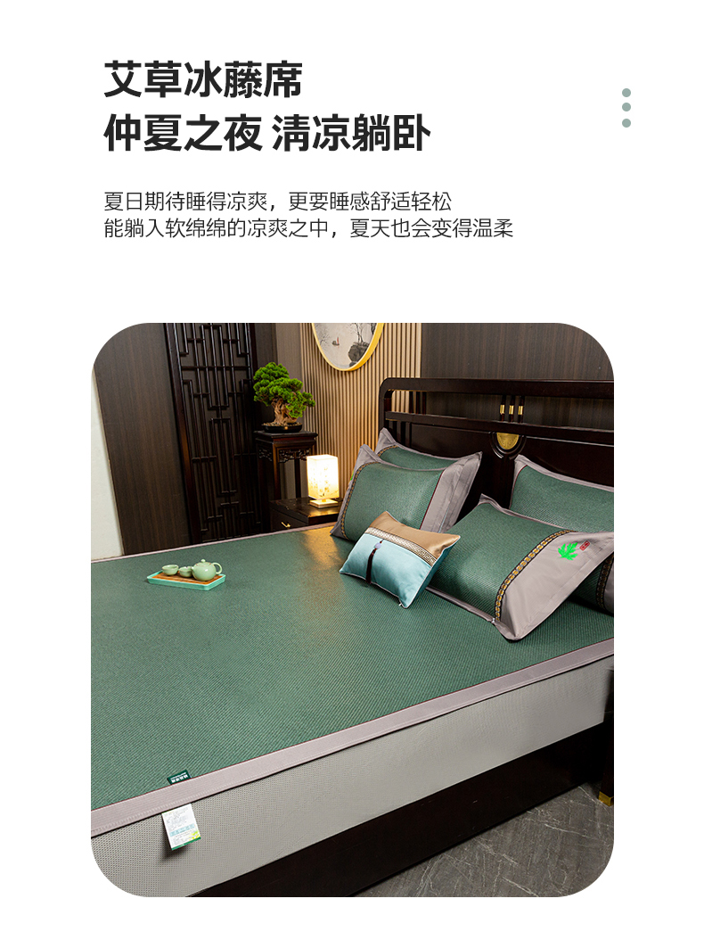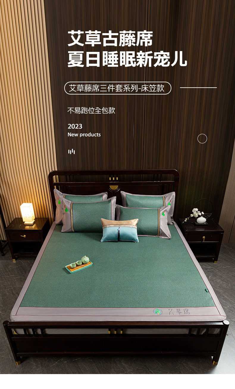 • 91家纺网 家纺一手货源 找家纺 简一 2026新款艾草古藤席床笠款凉席 (床笠)艾草席-墨绿