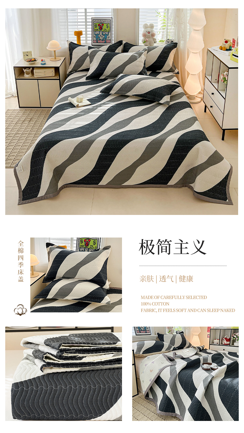 • 91家纺网 家纺一手货源 找家纺 梦精灵家纺 2026新款纯棉床盖单件全棉绗缝夹棉床单 四季通用榻榻米防滑学生宿舍单人被套枕套 时空旅人