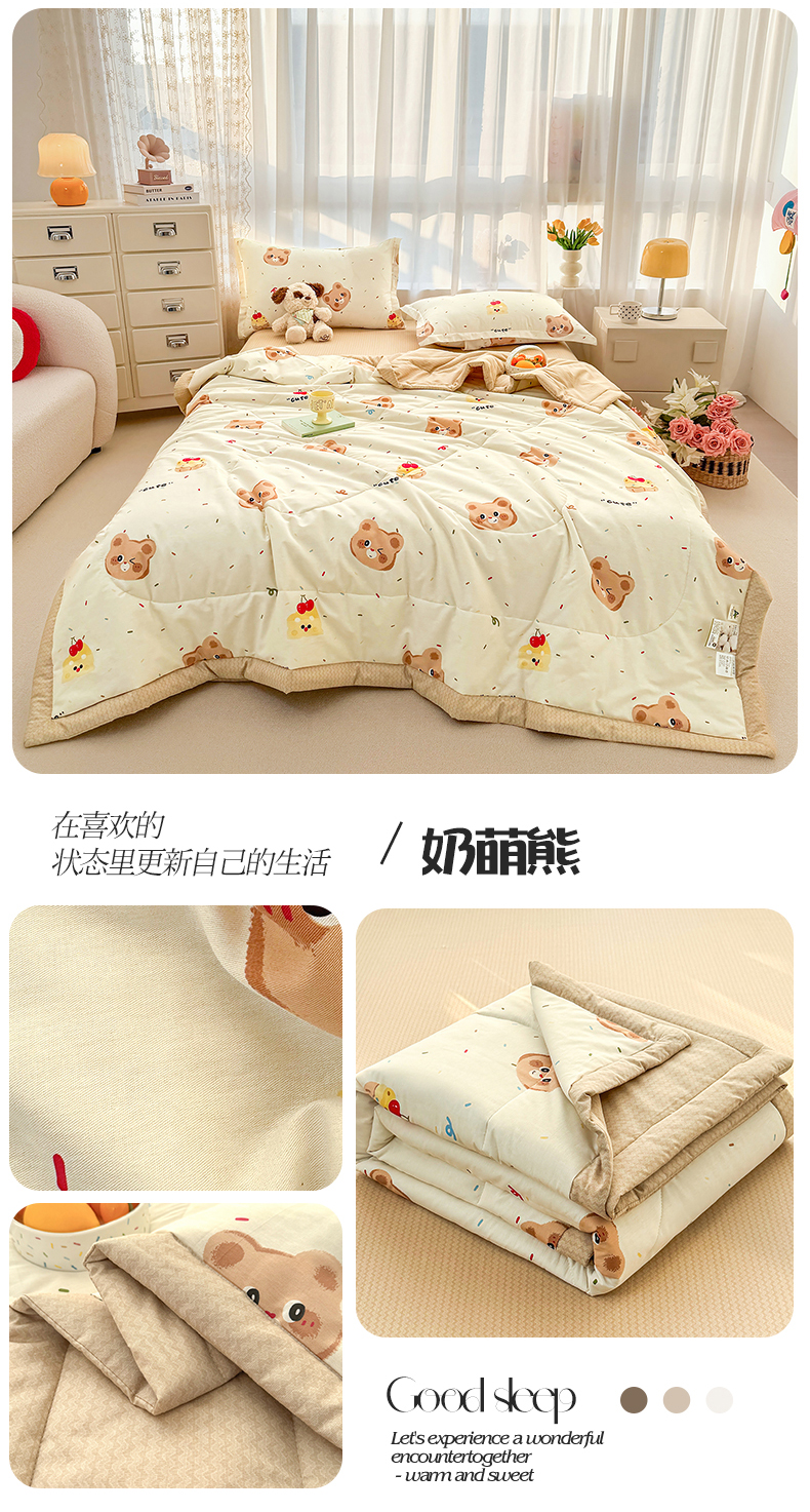 • 91家纺网 家纺一手货源 找家纺 瑶瑶家居 2026新款A类里外全棉夏凉被四件套-风格三 温暖熊