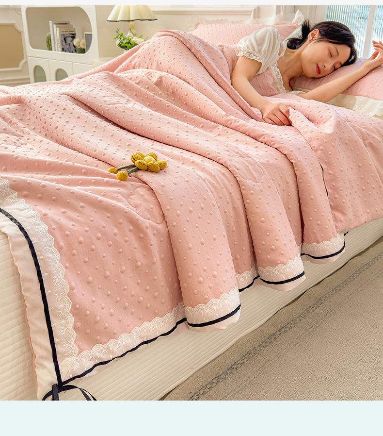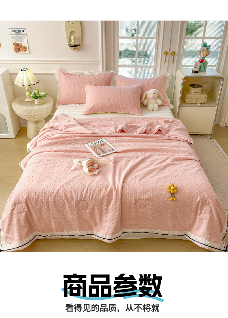 (总)布凡家居 2026春夏新款全棉刺绣皱皱纱夏被夏凉被空调被,莓有烦恼,蓝色蝴蝶结,萌萌小熊,奶芙小腊肠,桃心兔,幸运草,云间木马梦
