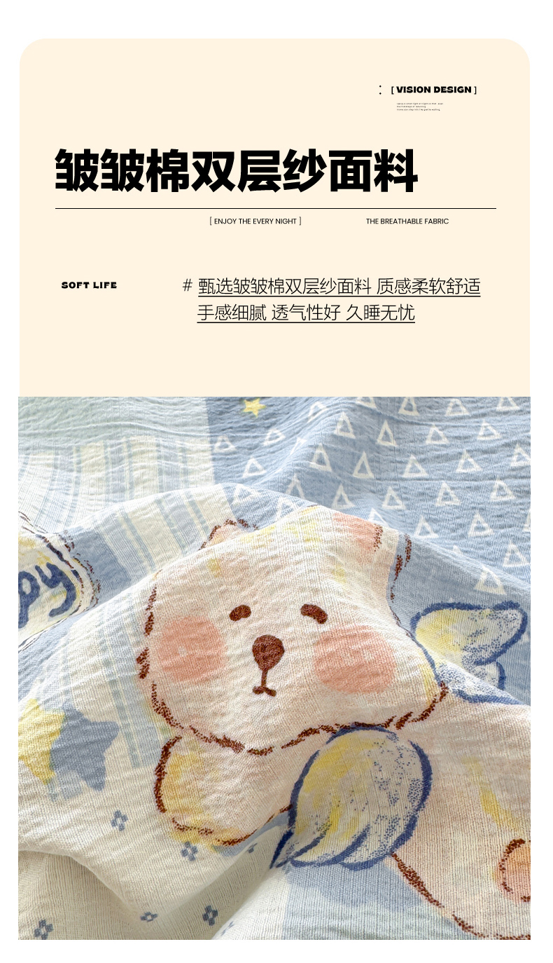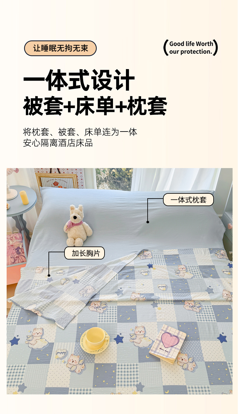 商品名称:Sweet dreams甜梦 2026新款A类皱皱双层纱小清新酒店一体式旅行睡袋 晚安小熊
