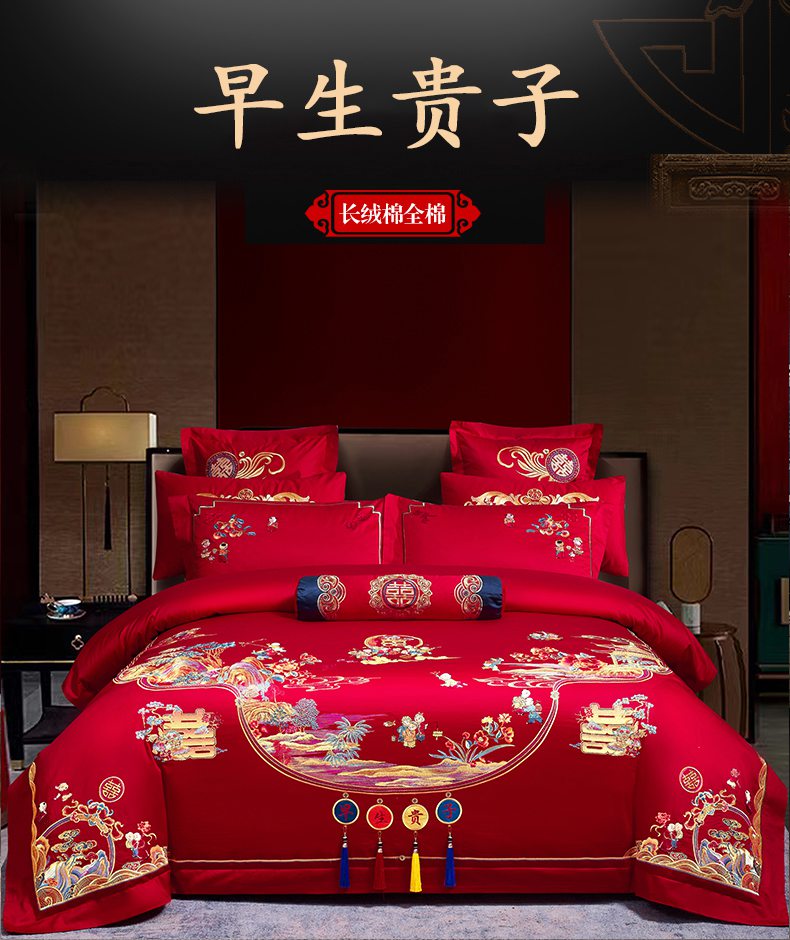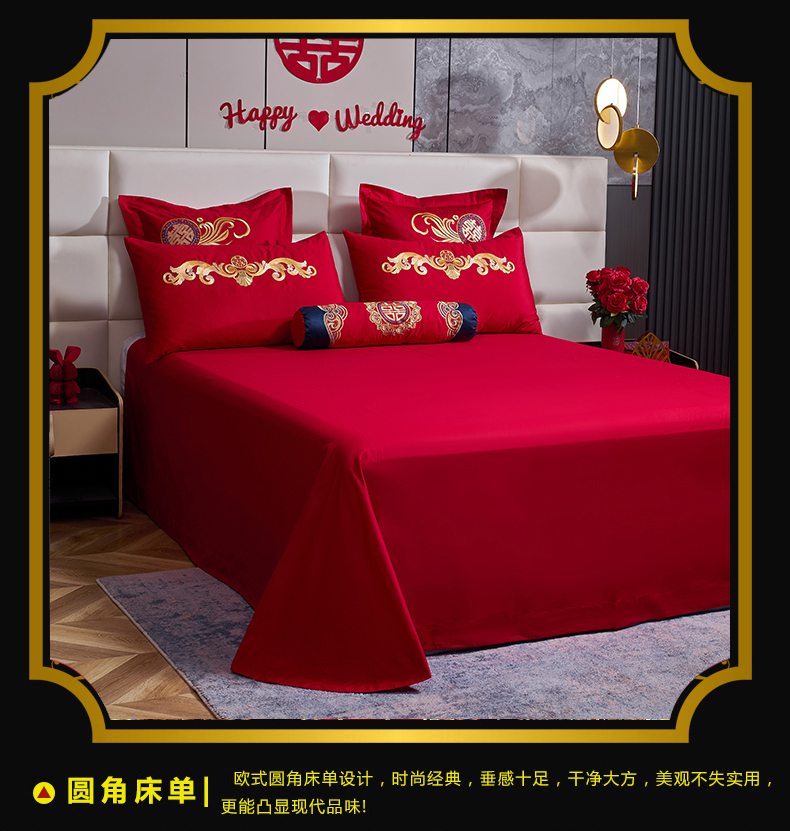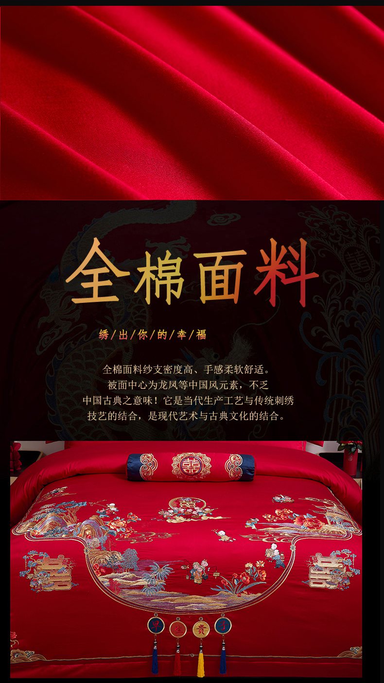 当前位置: 91家纺网 > 商品网购 > 床品套件 > 四件套 > 婚庆四件套 > 慕她家纺 2026慕她大花工艺款全棉纯棉婚庆四件套大红色刺绣结婚床上用品 早生贵子