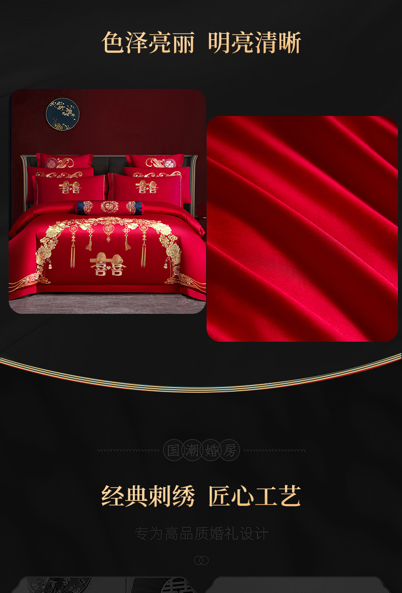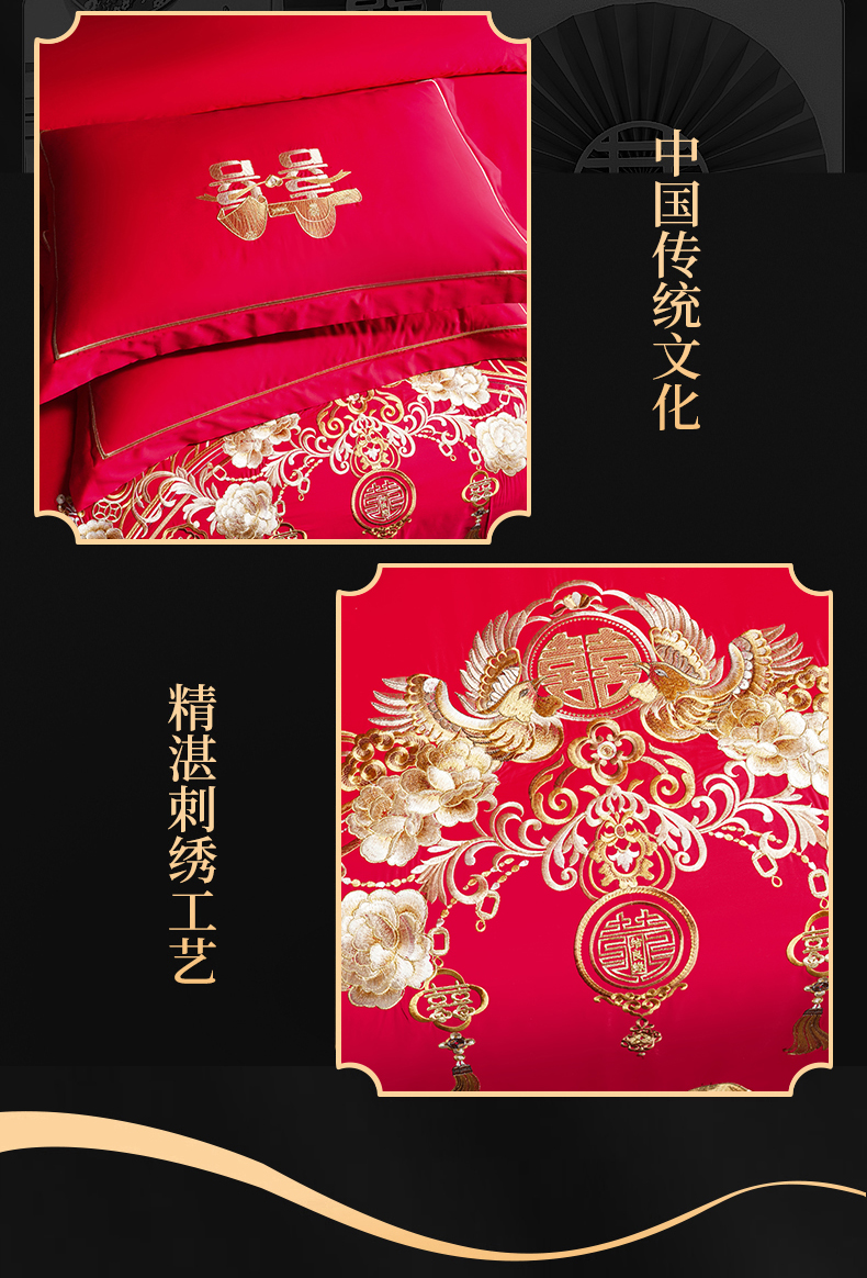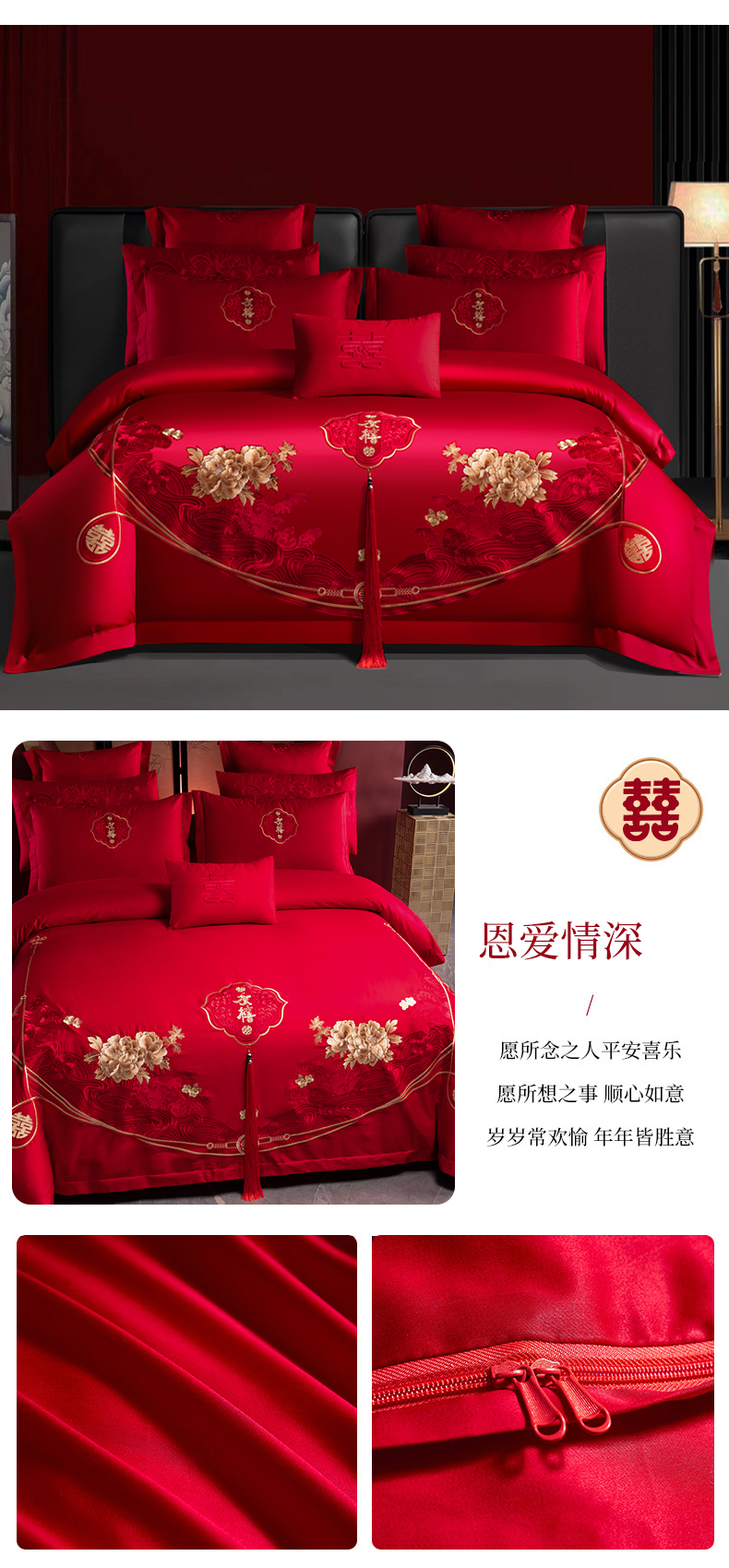 当前位置: 91家纺网 > 商品网购 > 床品套件 > 四件套 > 婚庆四件套 > 慕她家纺 2026慕她大花工艺款全棉纯棉婚庆四件套大红色刺绣结婚床上用品 走进幸福 金