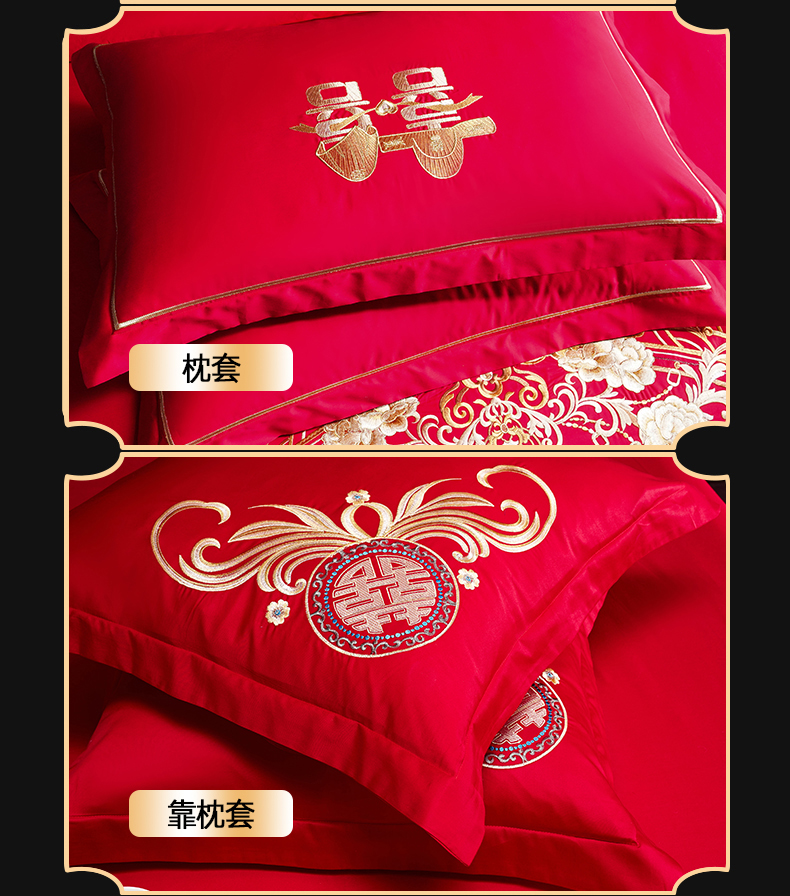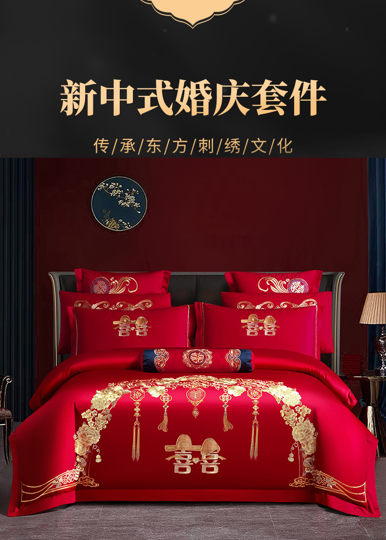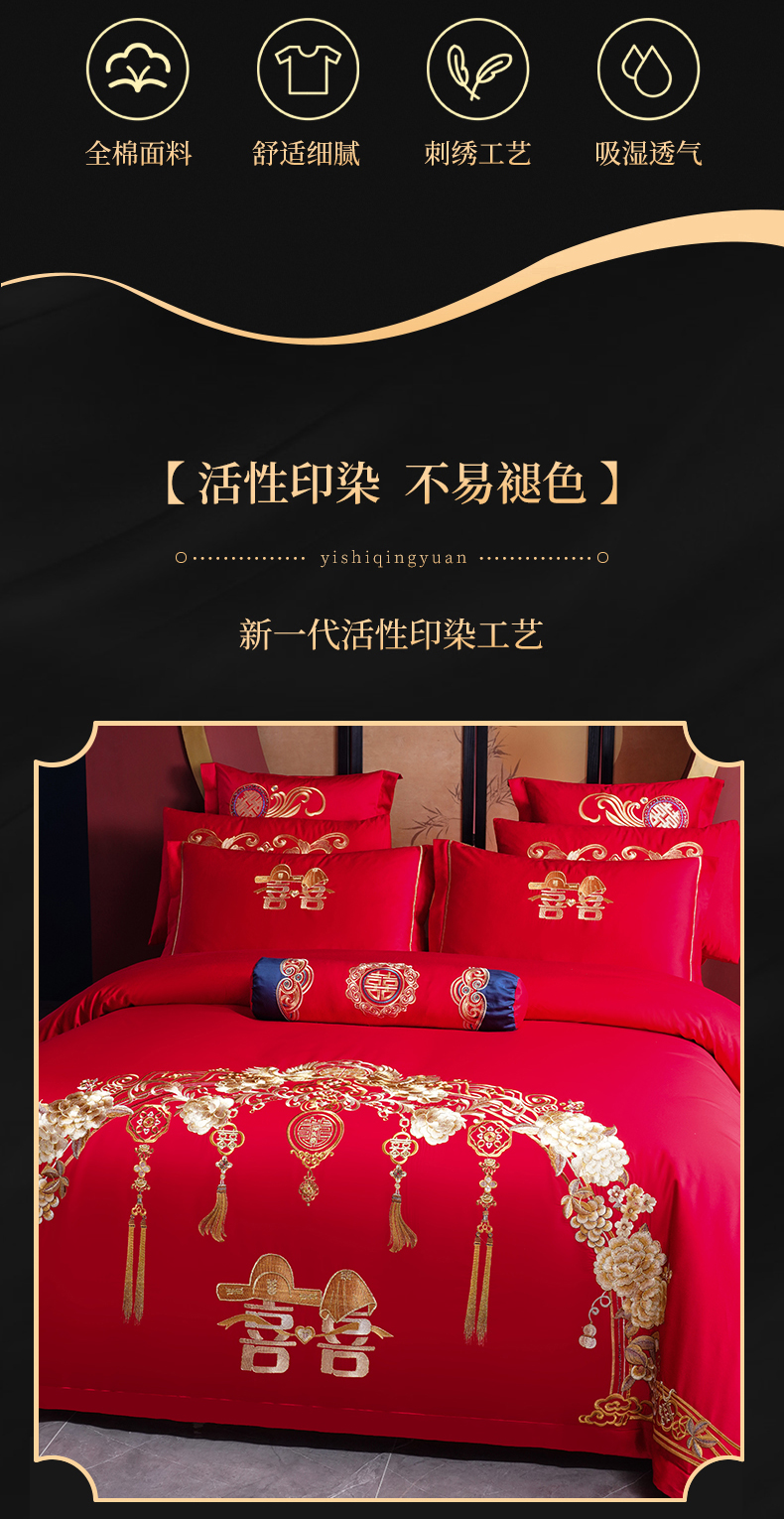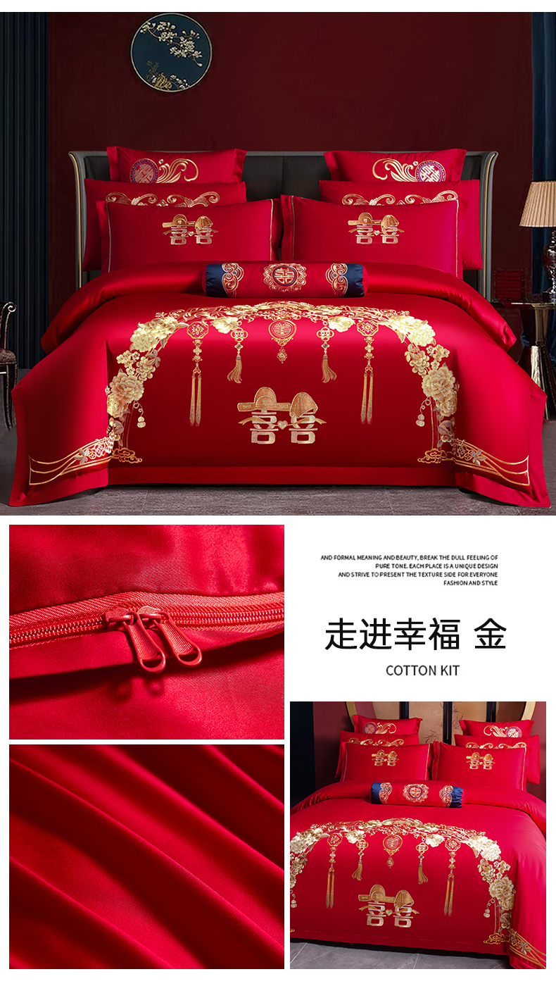 当前位置: 91家纺网 > 商品网购 > 床品套件 > 四件套 > 婚庆四件套 > 慕她家纺 2026慕她大花工艺款全棉纯棉婚庆四件套大红色刺绣结婚床上用品 走进幸福 金