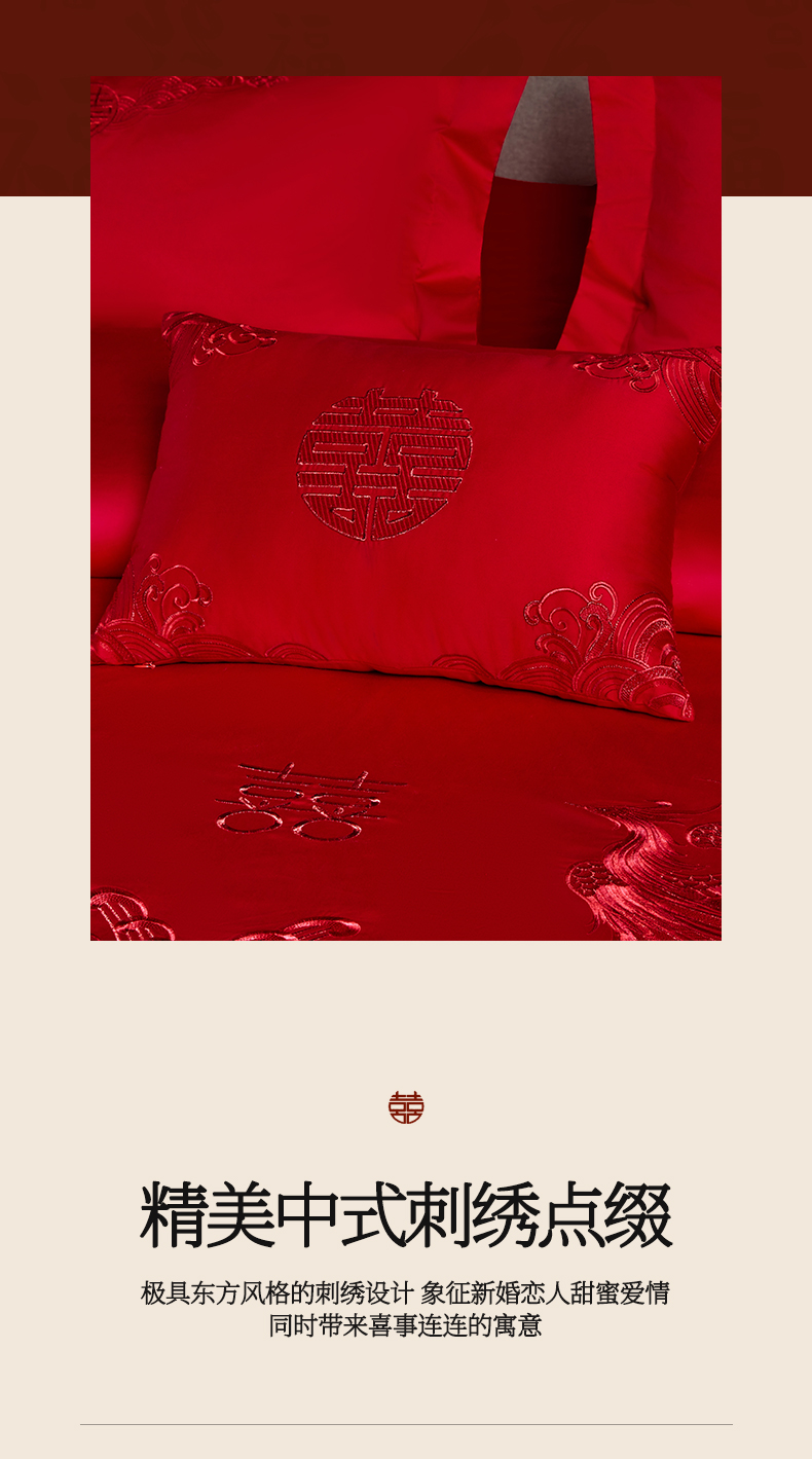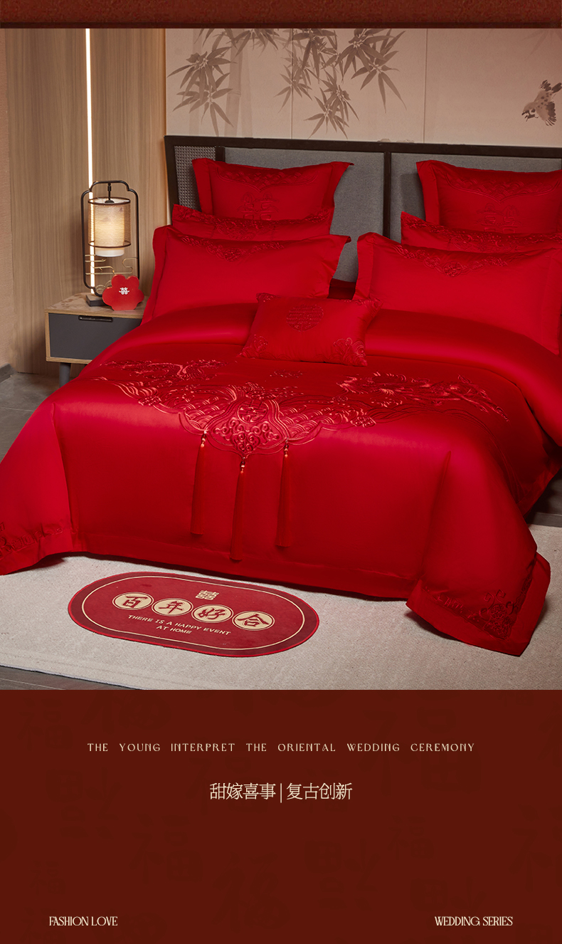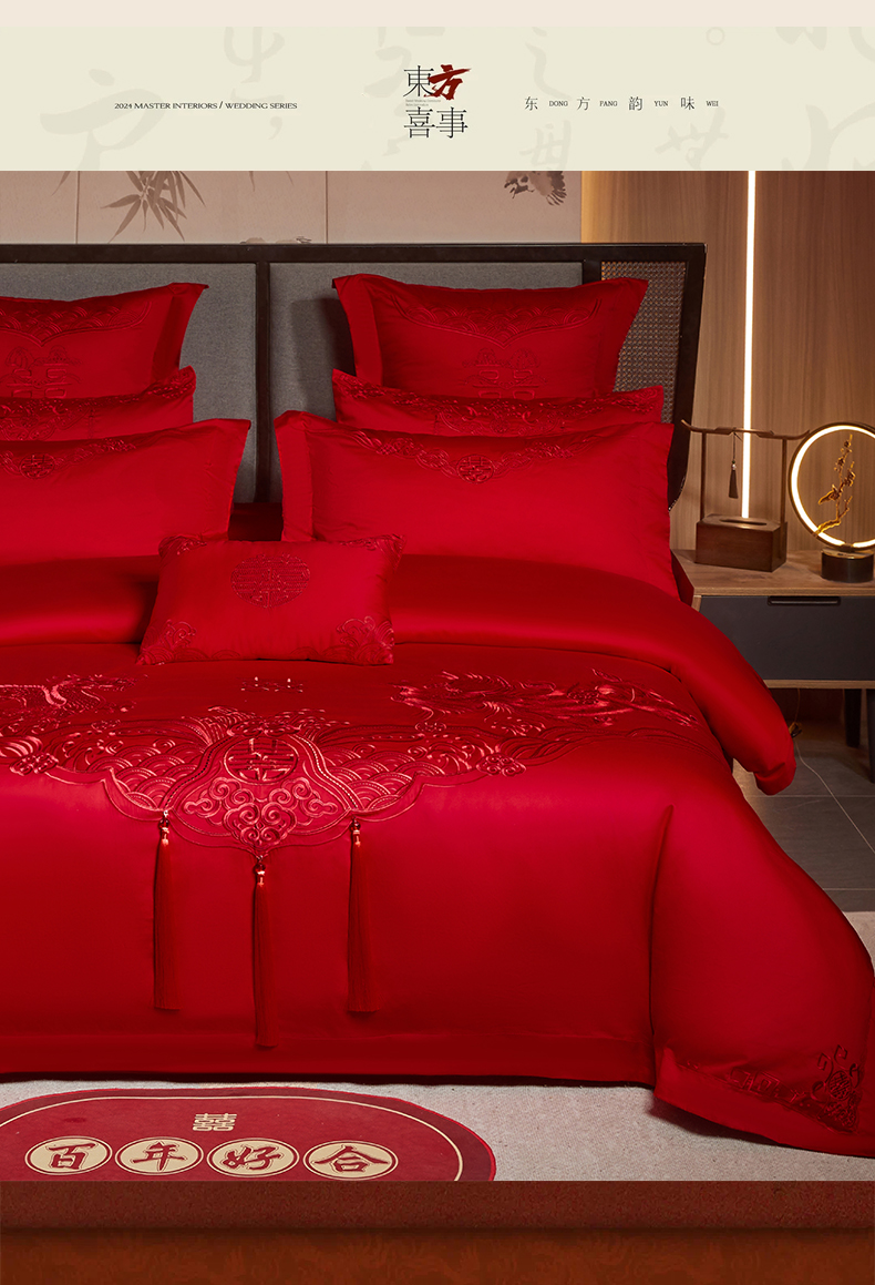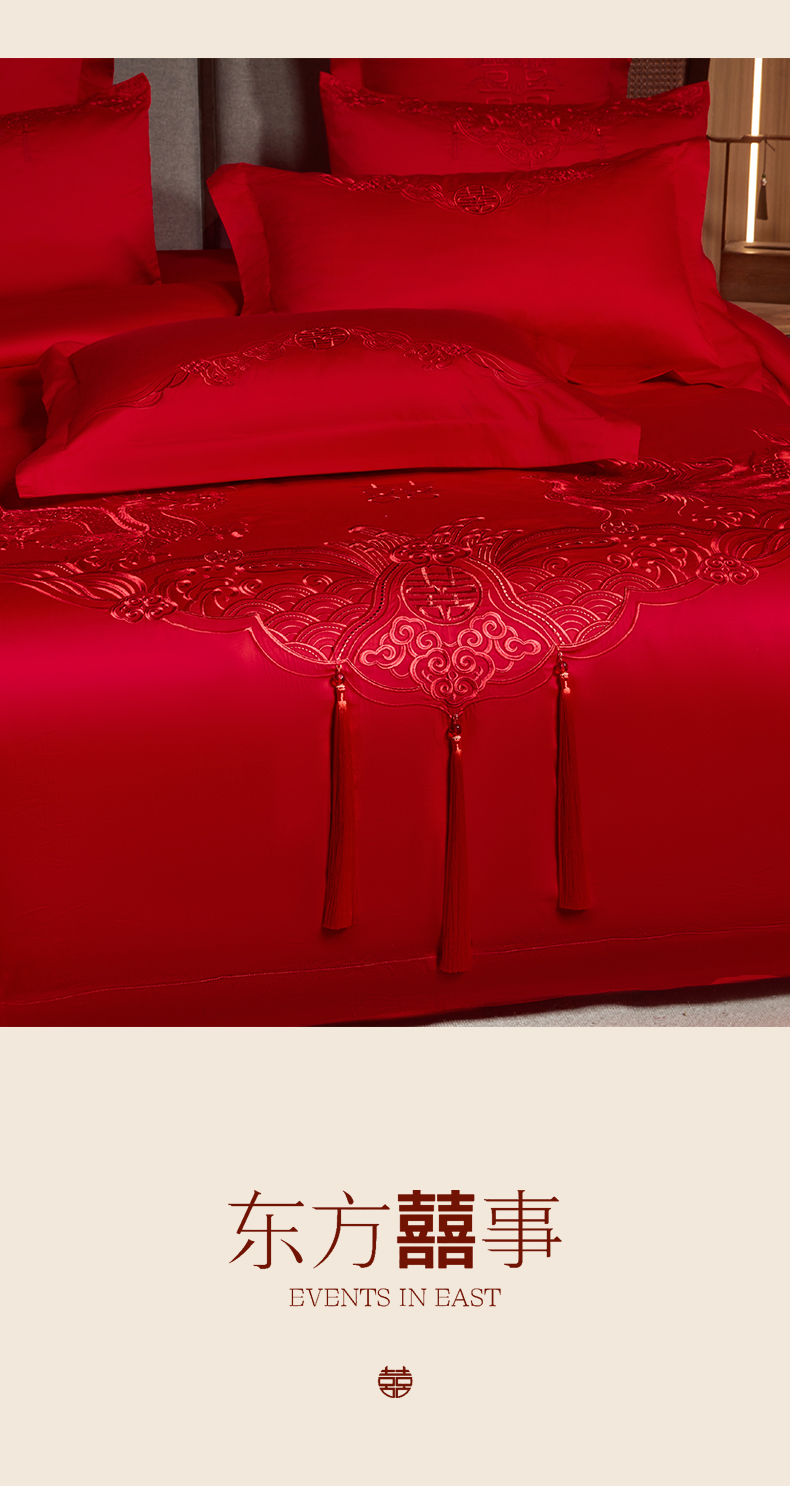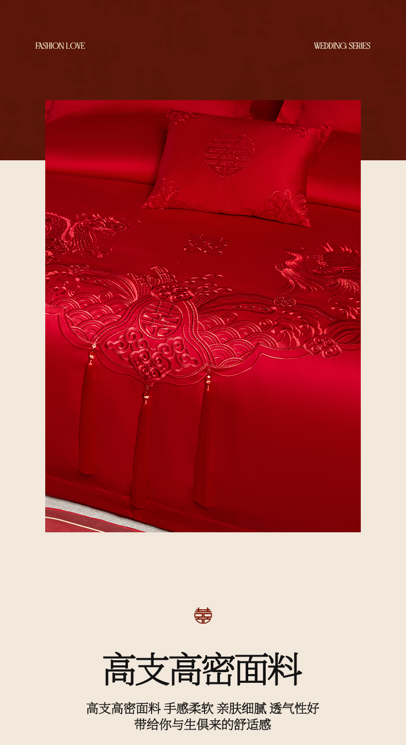 当前位置: 91家纺网 > 商品网购 > 床品套件 > 四件套 > 婚庆四件套 > 润锦云 2026新款150克高克重中式婚庆款高支高密重工刺绣四件套 龙凤情缘--红色
