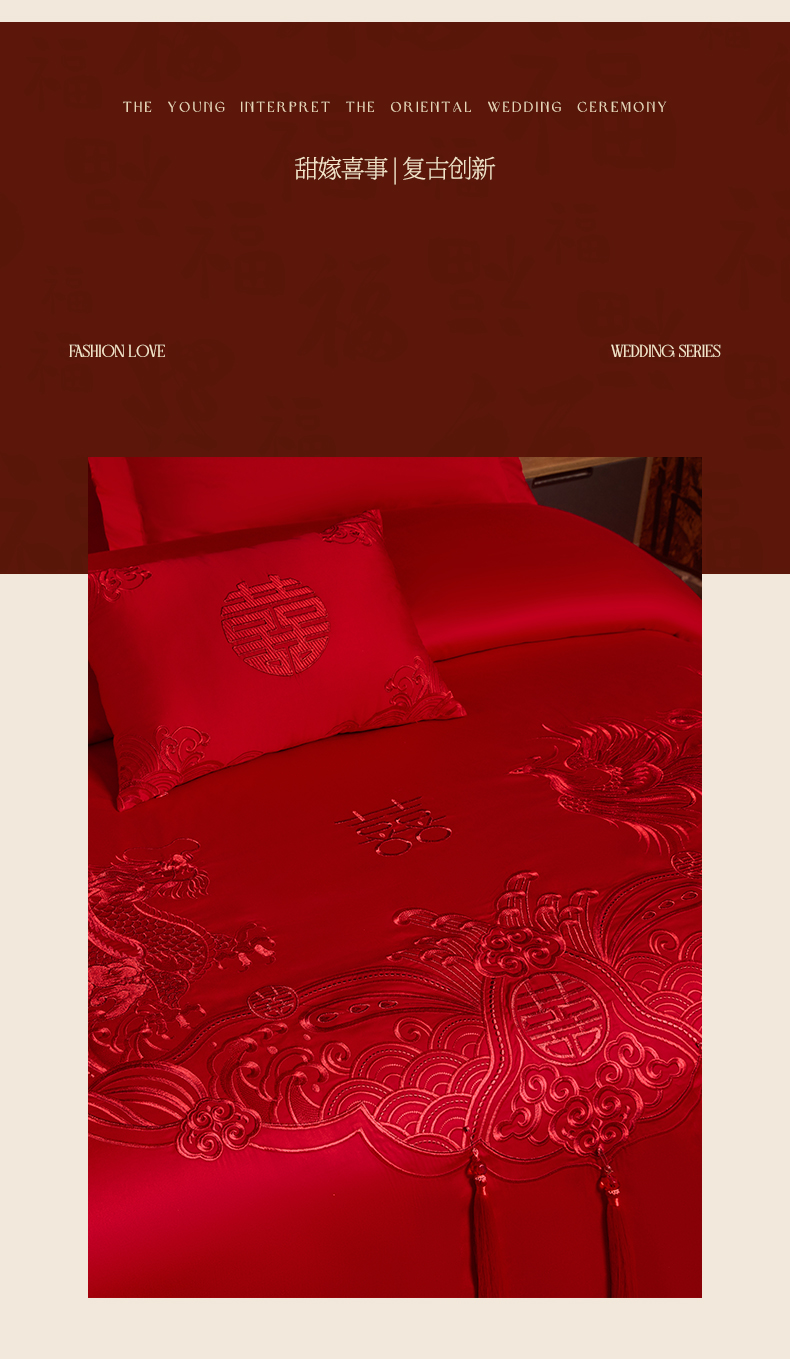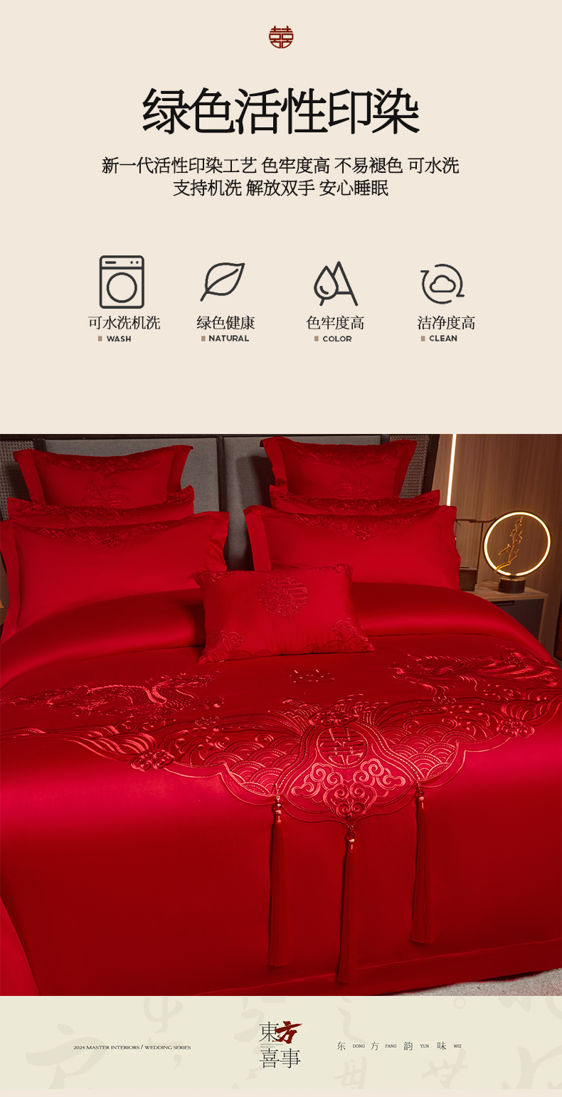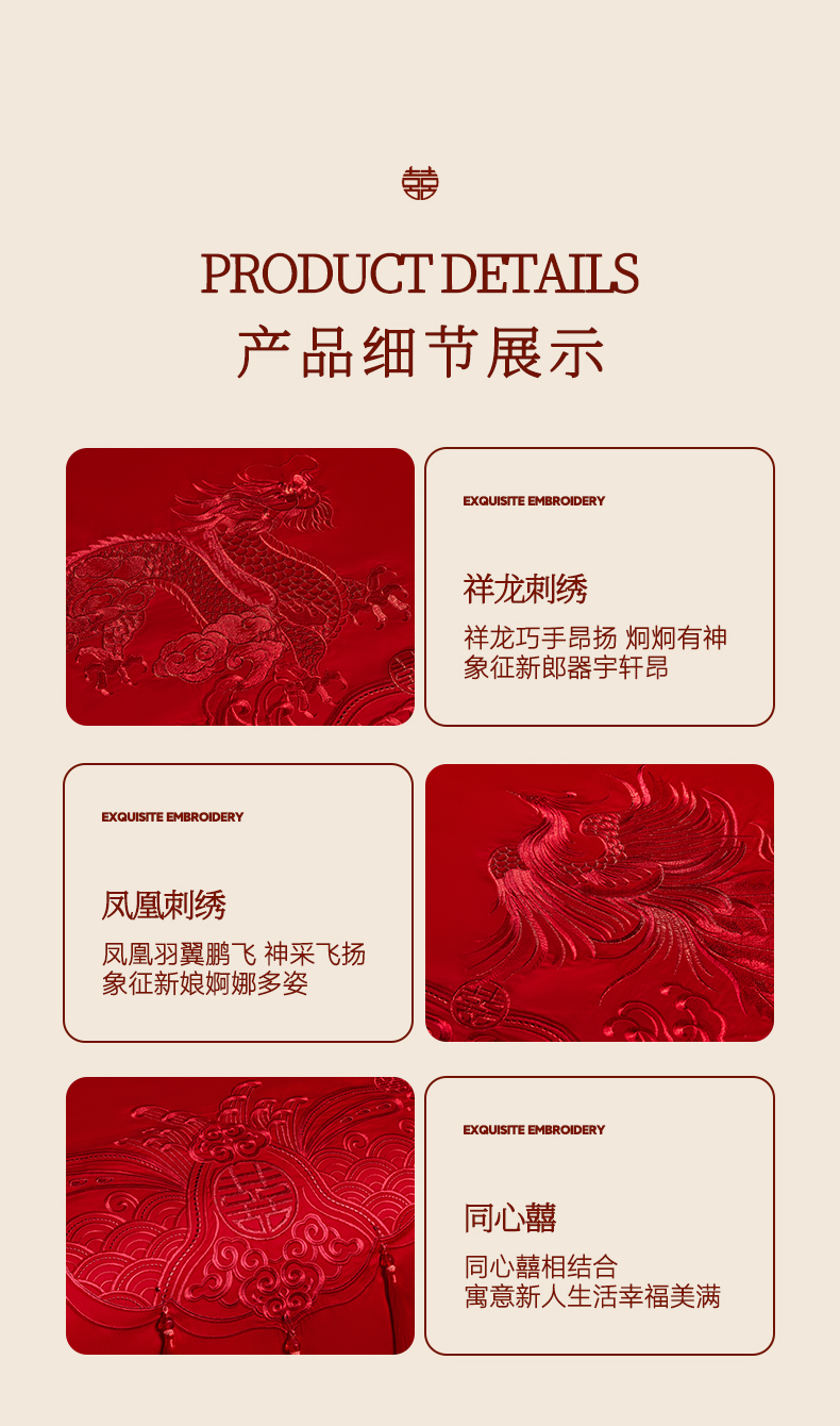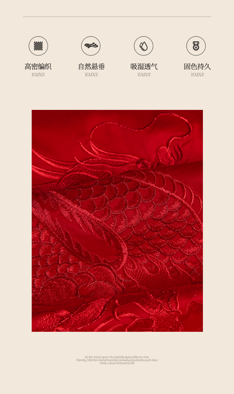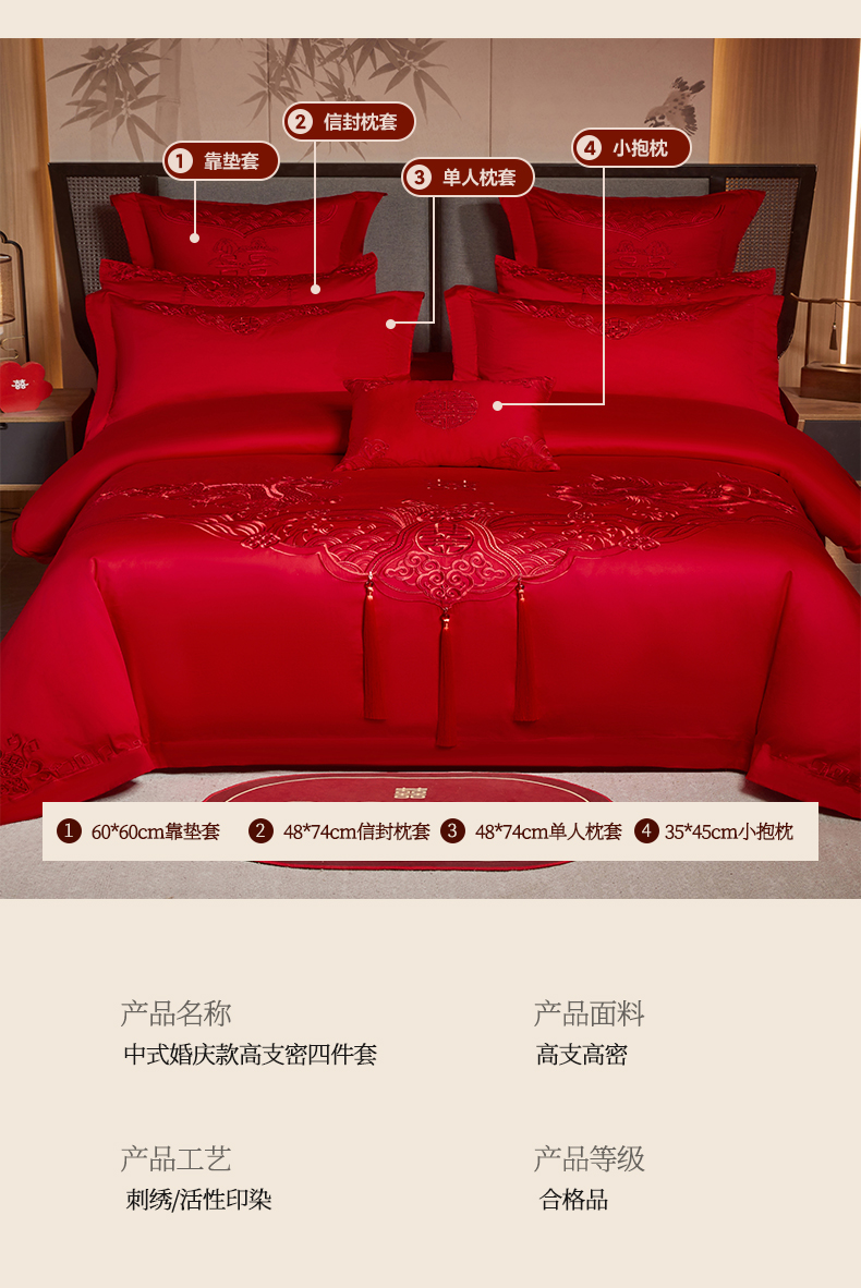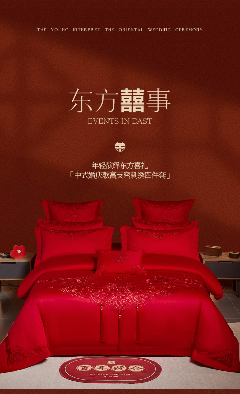 当前位置: 91家纺网 > 商品网购 > 床品套件 > 四件套 > 婚庆四件套 > 润锦云 2026新款150克高克重中式婚庆款高支高密重工刺绣四件套 龙凤情缘--红色