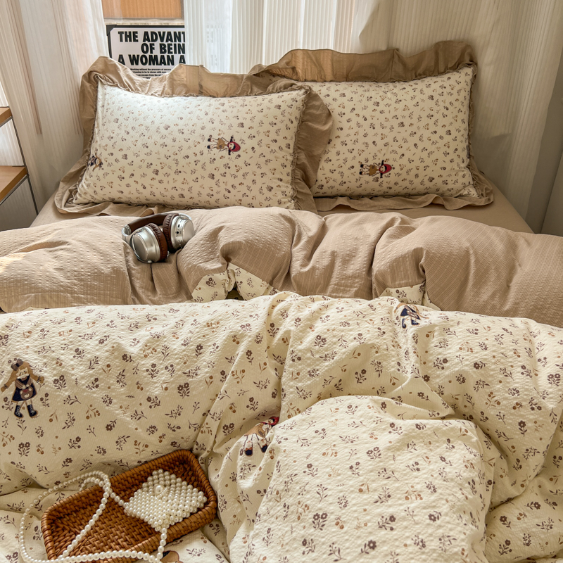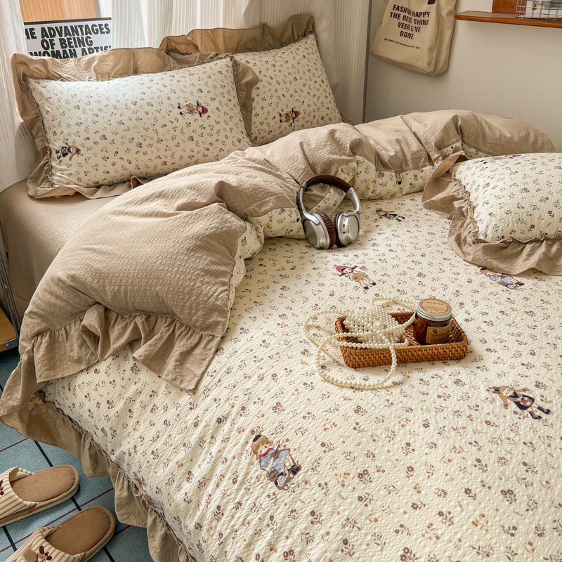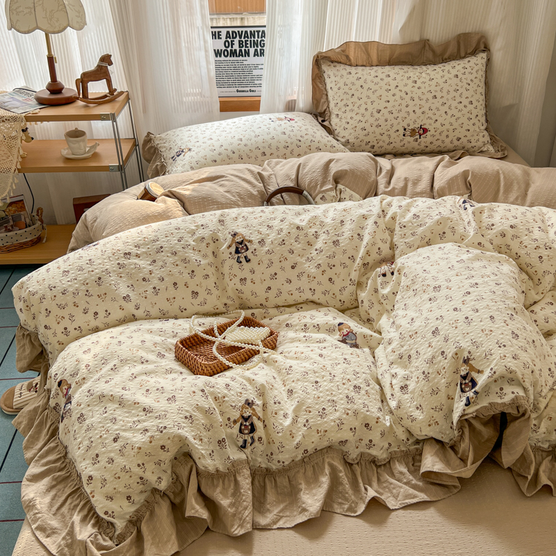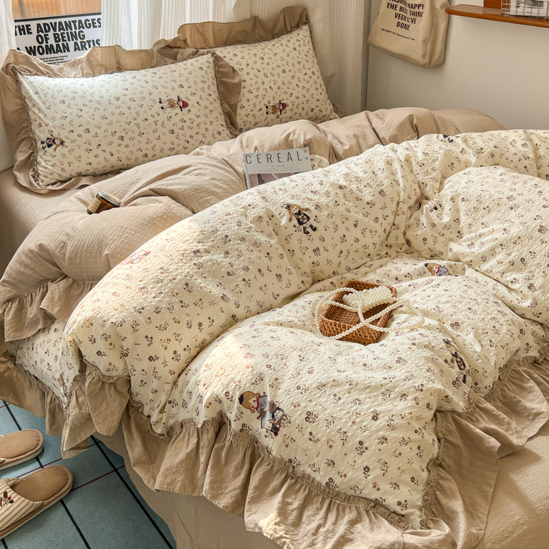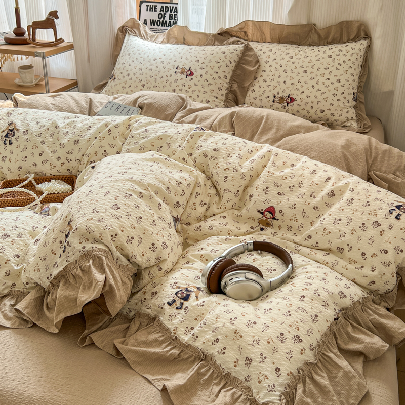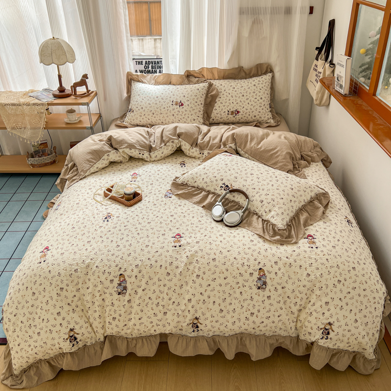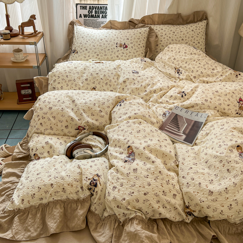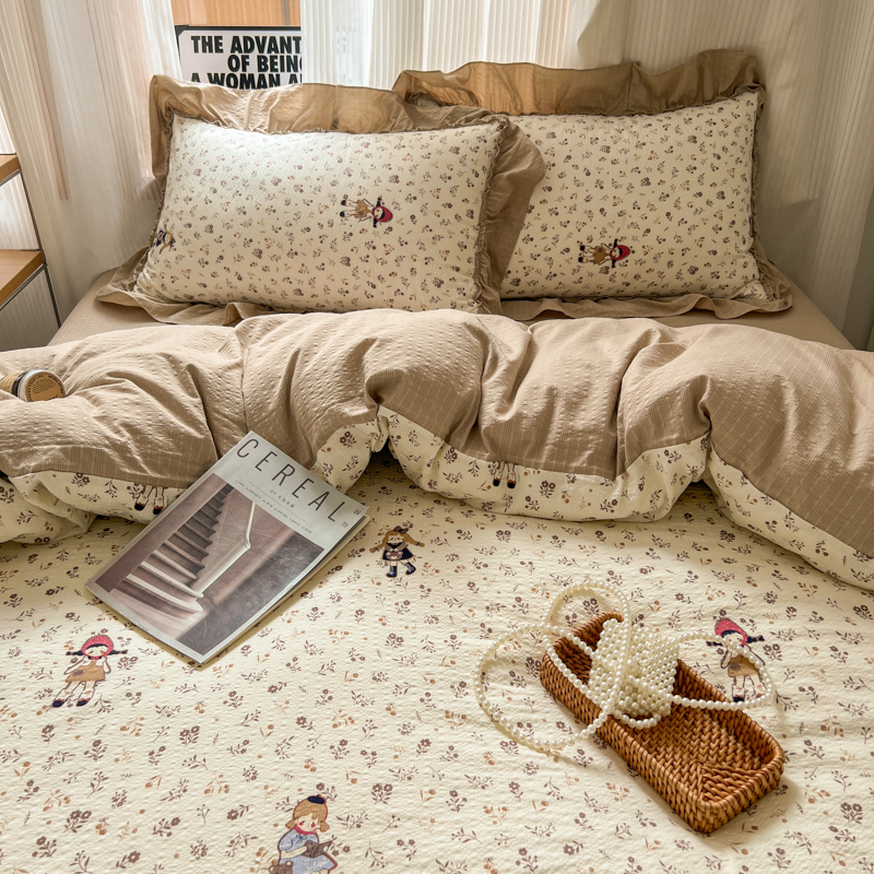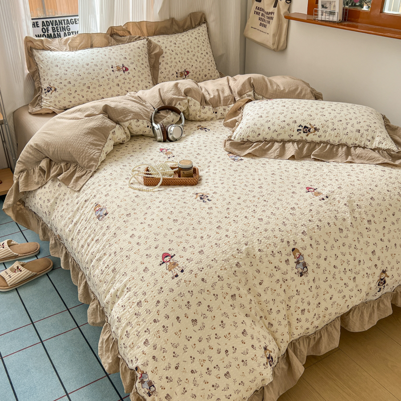 当前位置: 91家纺网 > 商品网购 > 床品套件 > 四件套 > 化纤活性四件套 > 2026新款泡芙纱花边四件套 小女孩