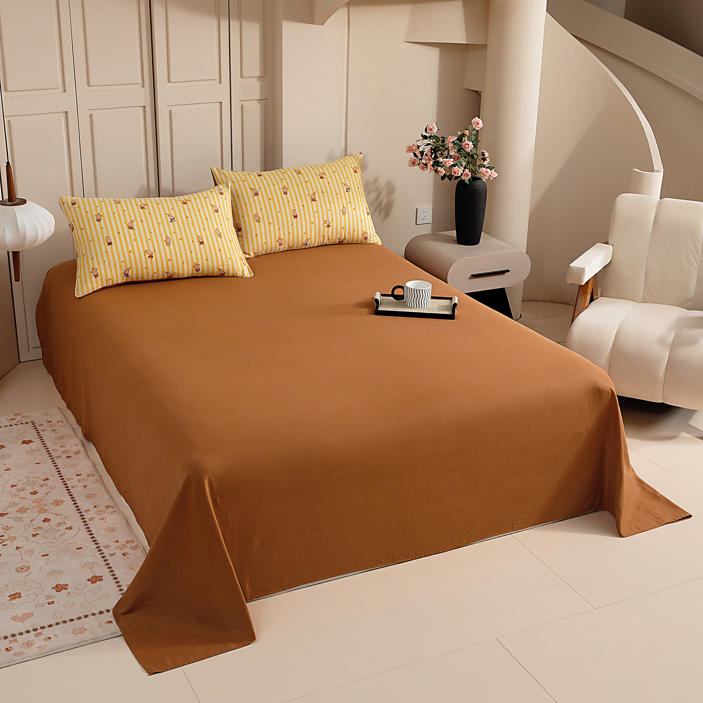 情煊家纺 2026新款全棉双层纱单品床单 焦糖
