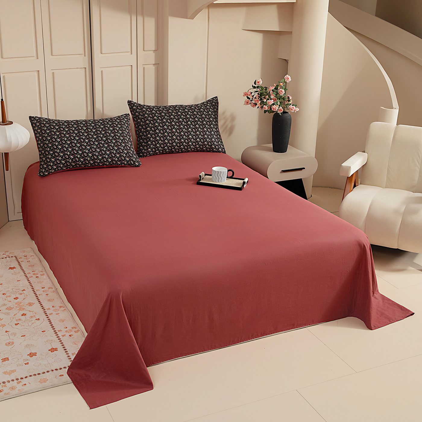 (总)情煊家纺 2026新款全棉双层纱单品床单,奶油黄,胭脂红,深咖,焦糖,仙霞