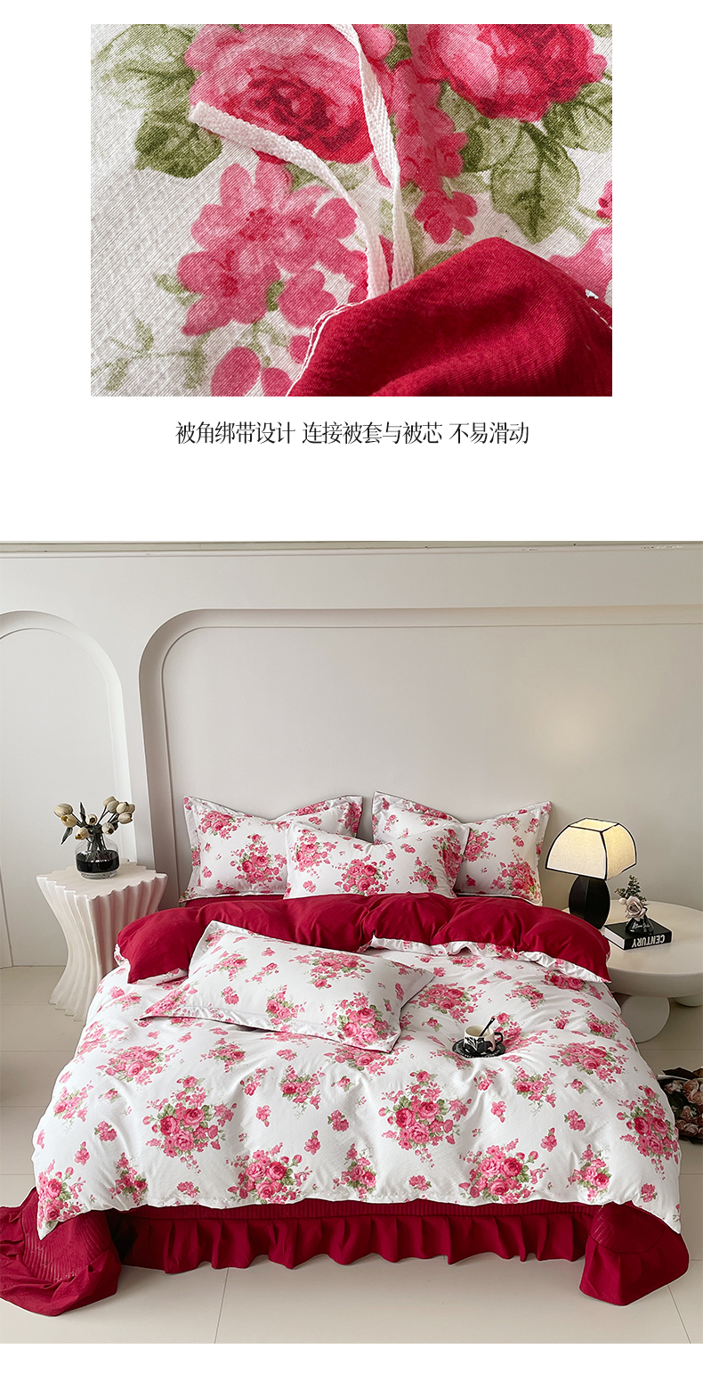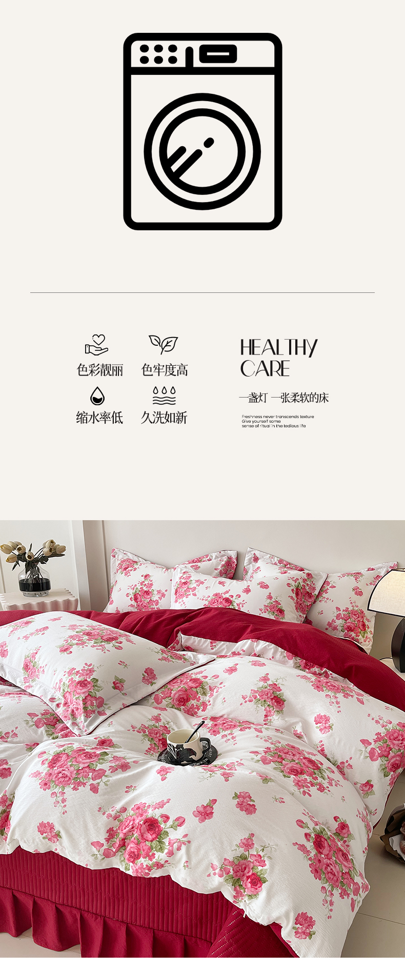 (总)锦彩家居 2026新款皱皱水洗棉床盖四件套,安妮,繁花,海德花园,卡地亚-红,玫瑰园,樱桃蜜语