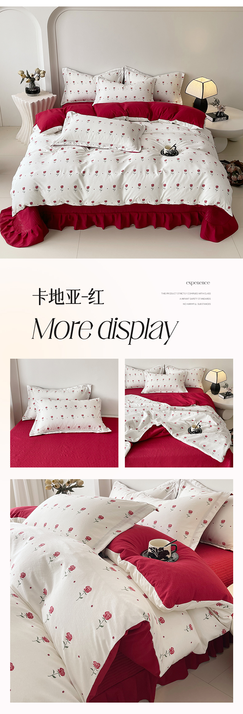 (总)锦彩家居 2026新款皱皱水洗棉夏被床盖四件套,安妮,繁花,海德花园,卡地亚-红,玫瑰园,樱桃蜜语