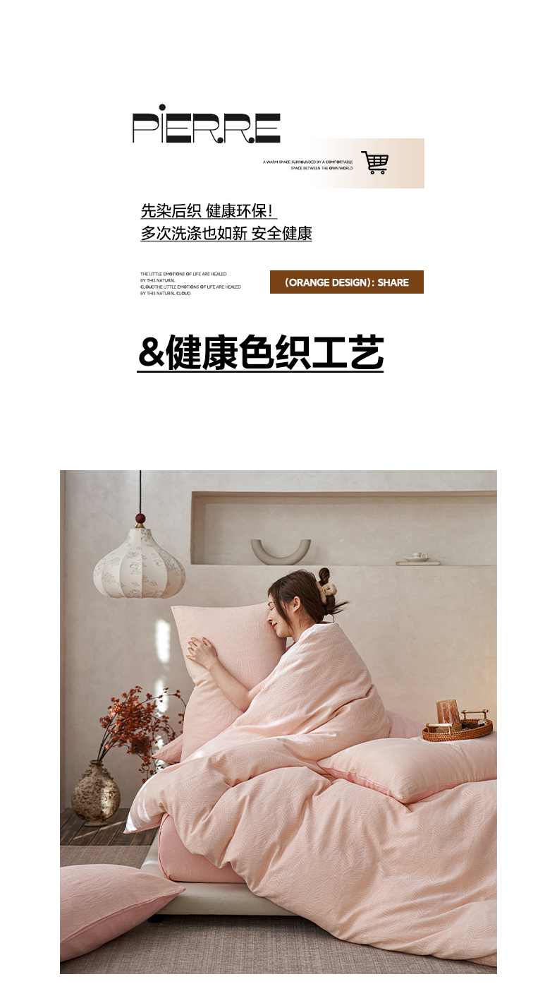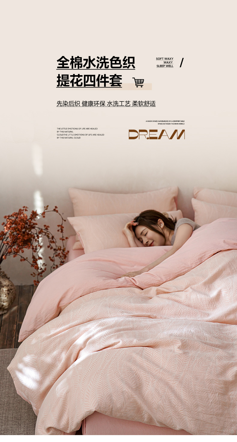 商品名称:如一 2026新款色织提花全棉水洗棉四件套第一批 叶笙-粉