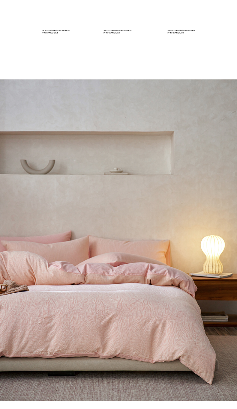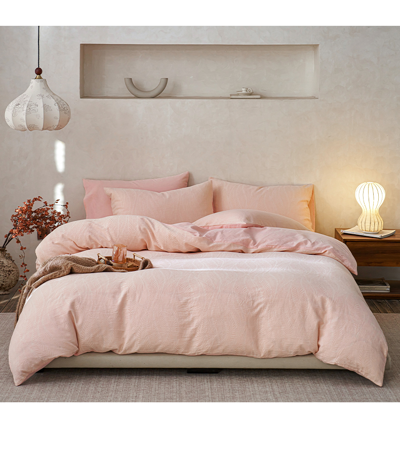 如一 2026新款色织提花全棉水洗棉四件套第一批 叶笙-粉