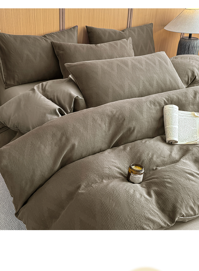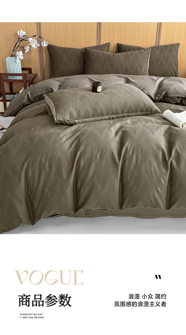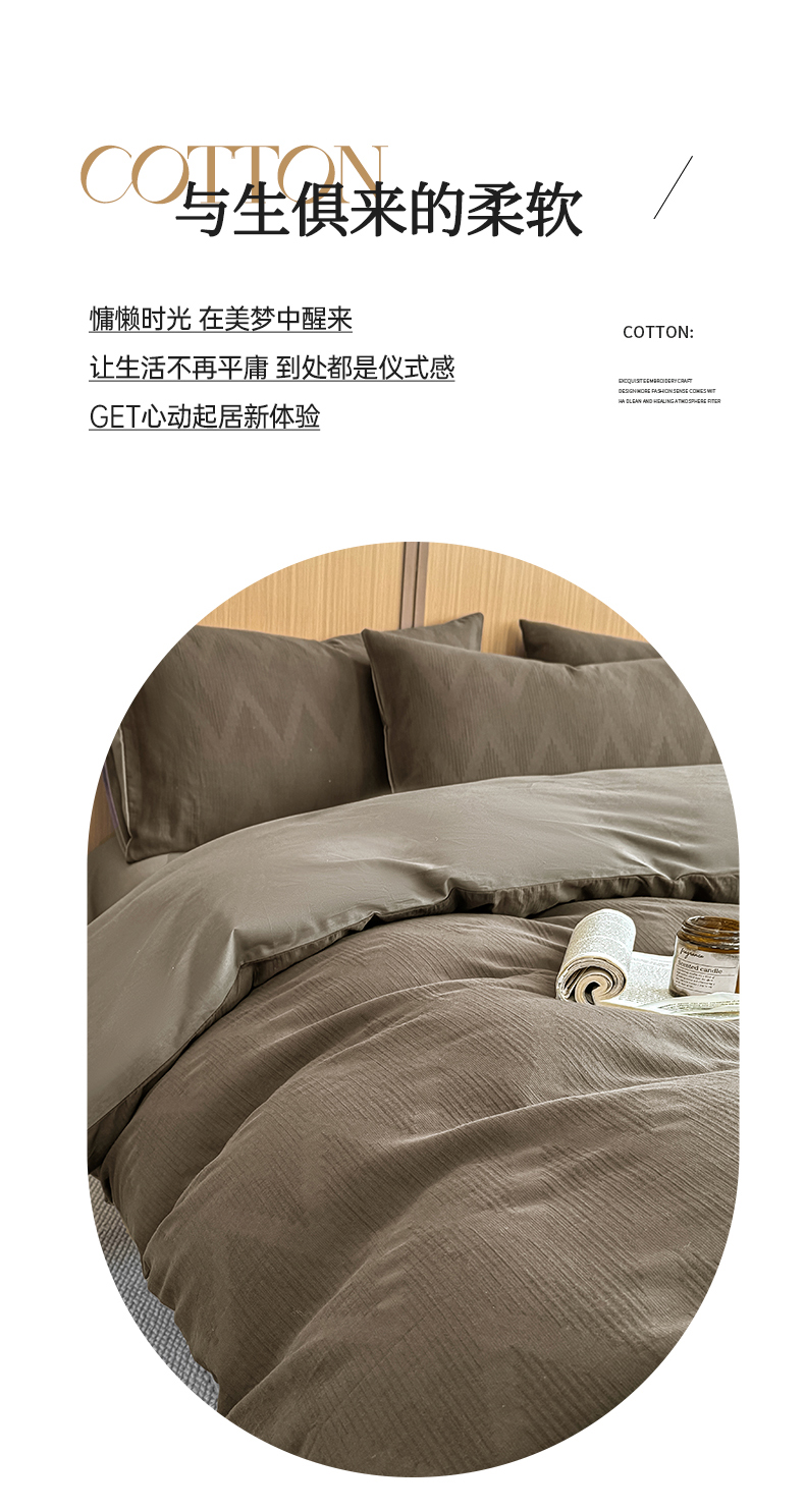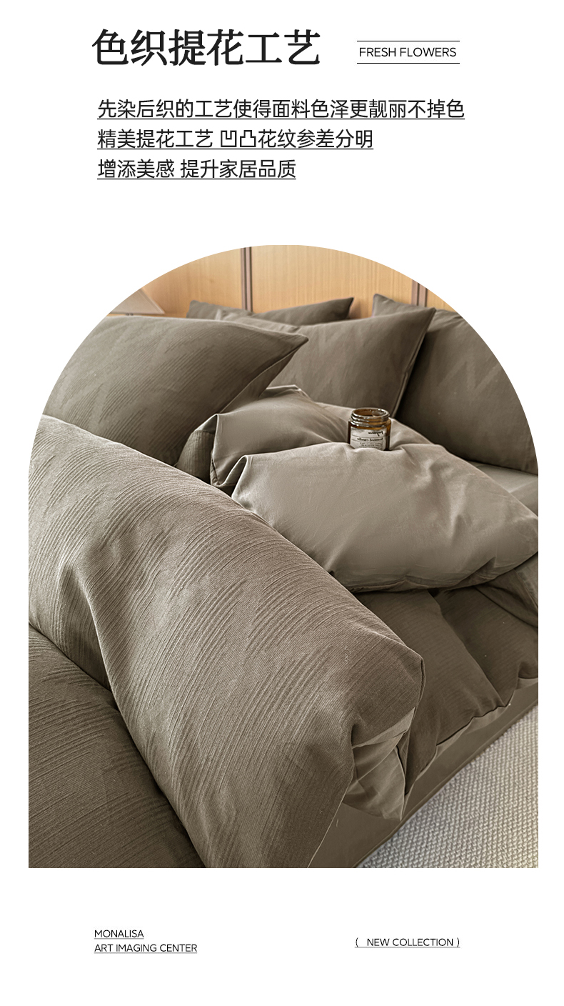 当前位置: 91家纺网 > 商品网购 > 床品套件 > 四件套 > 全棉普通四件套 > 灰鲸 2026新款全棉纯棉三层纱色织提花四件套 影韵-摩卡