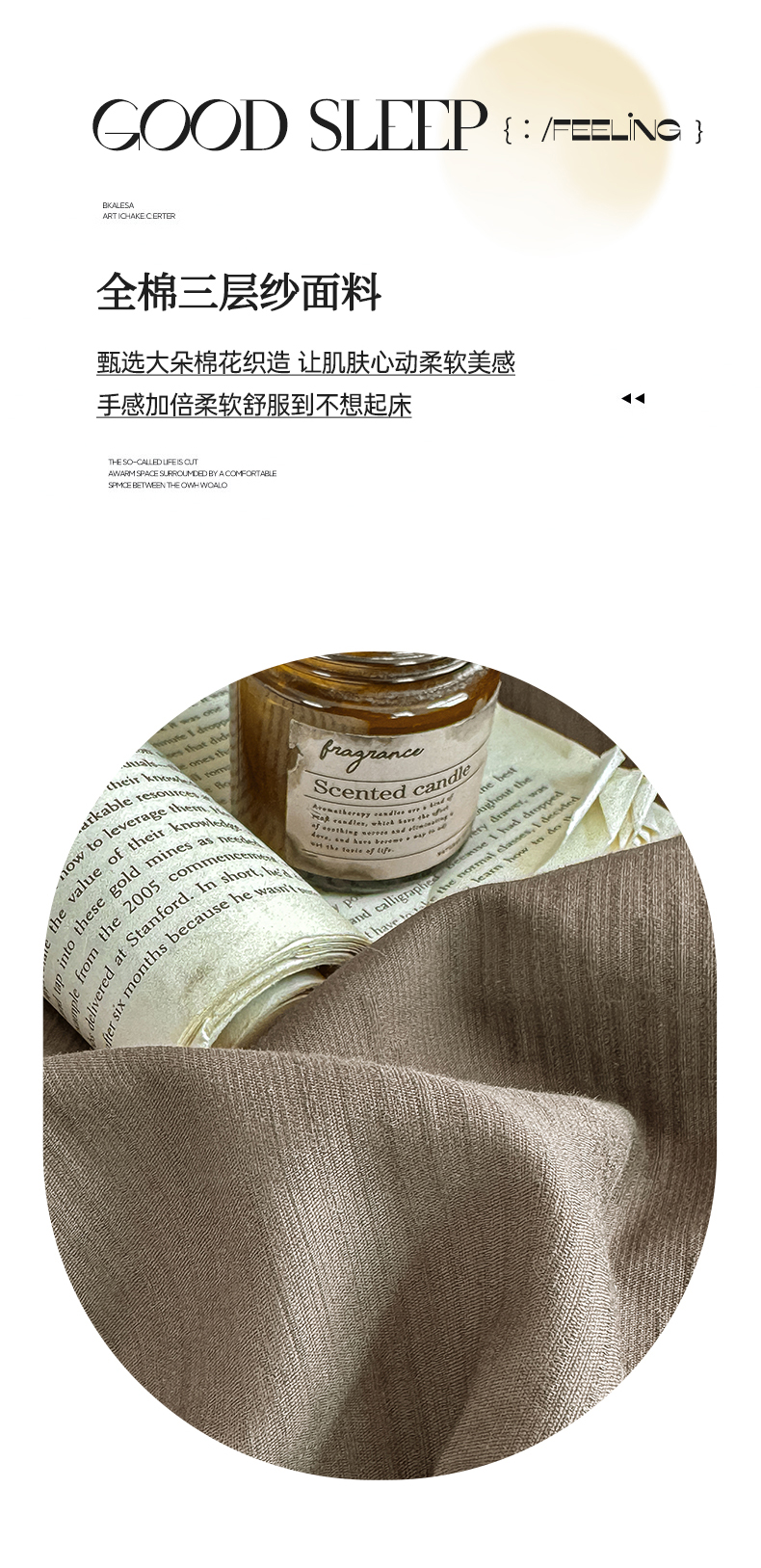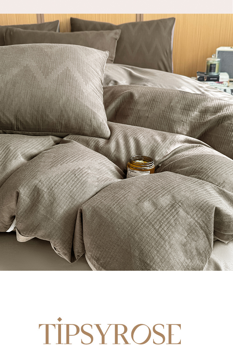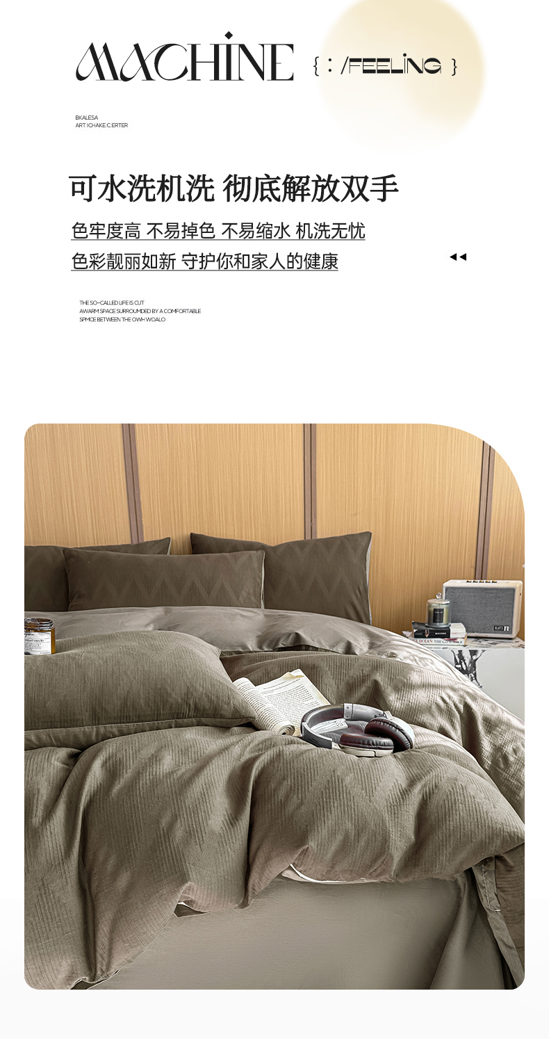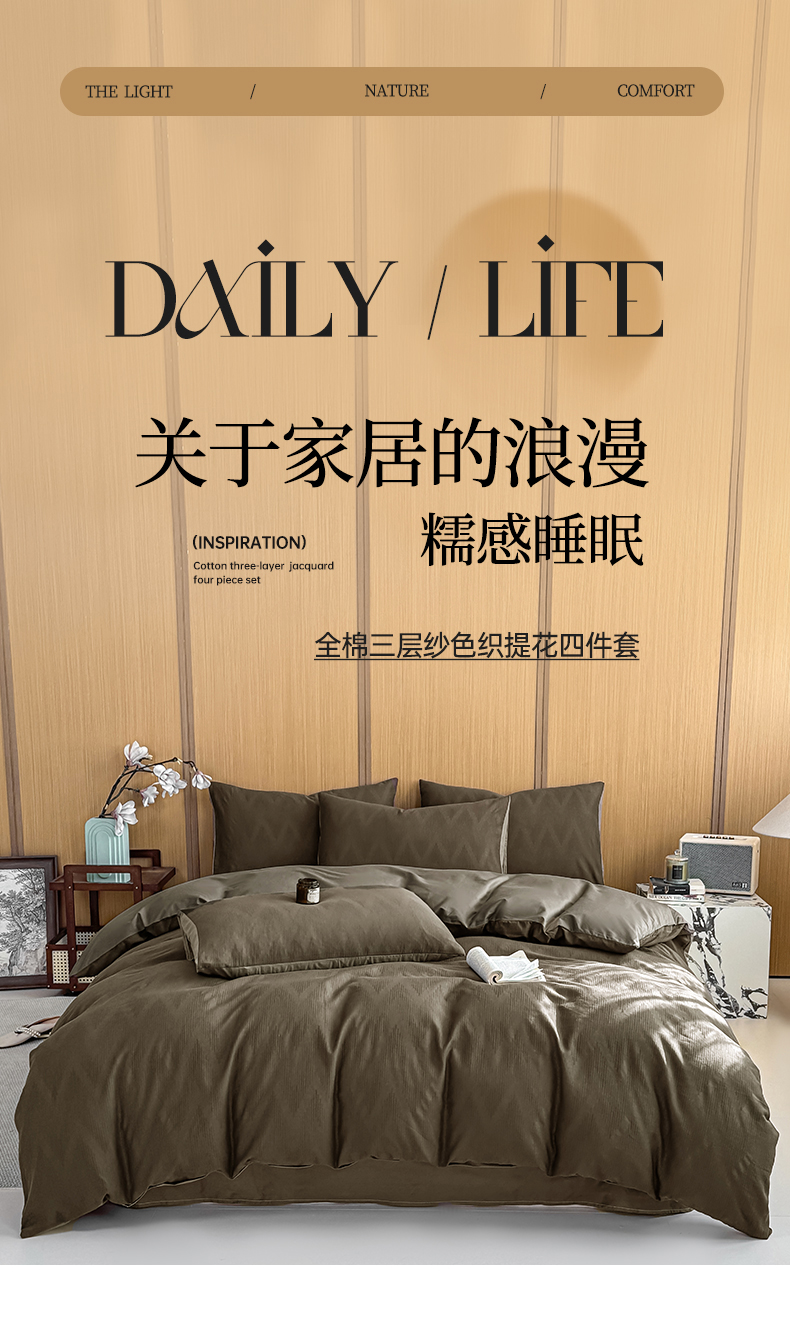 当前位置: 91家纺网 > 商品网购 > 床品套件 > 四件套 > 全棉普通四件套 > 灰鲸 2026新款全棉纯棉三层纱色织提花四件套 影韵-摩卡