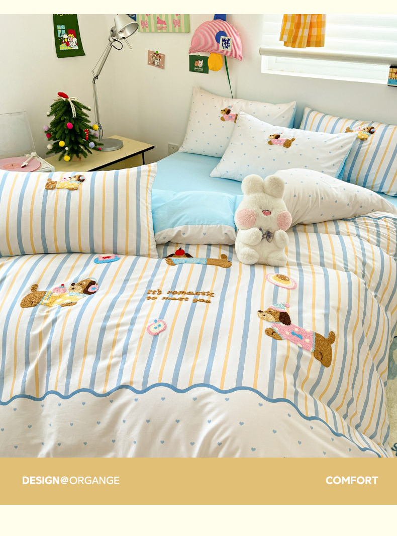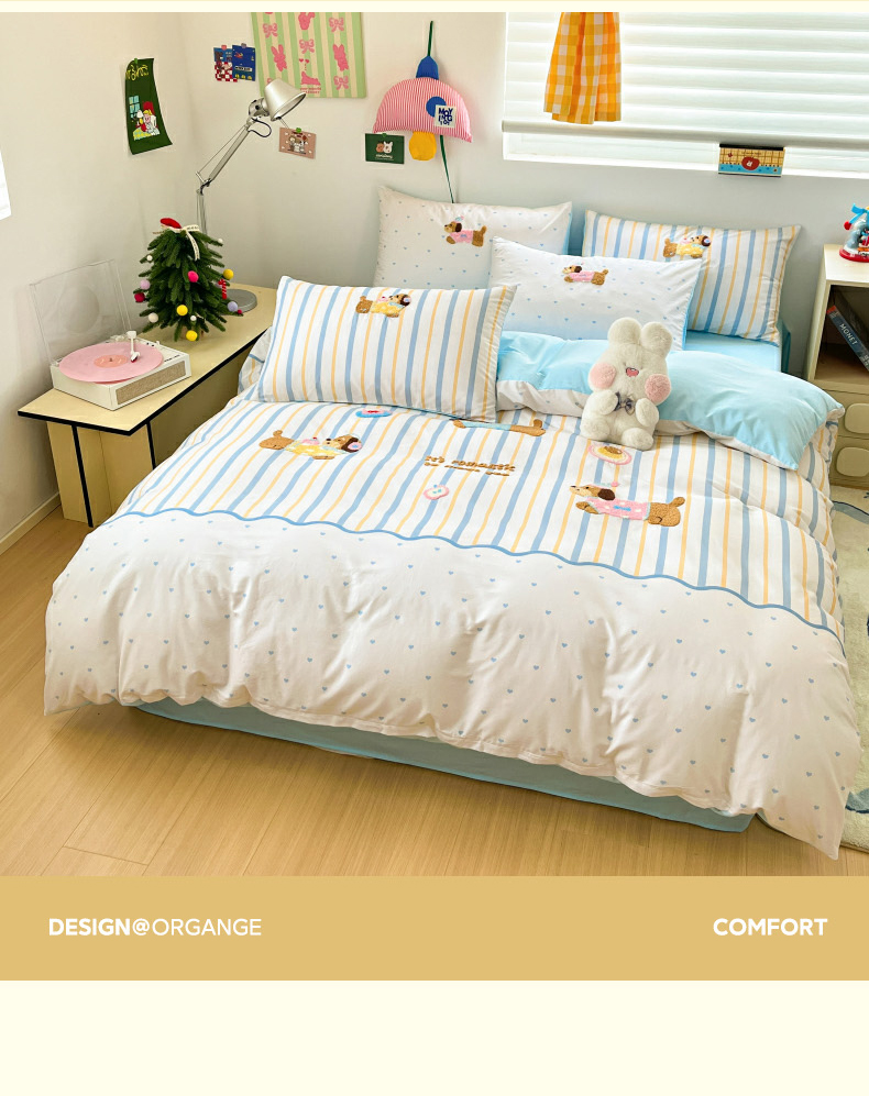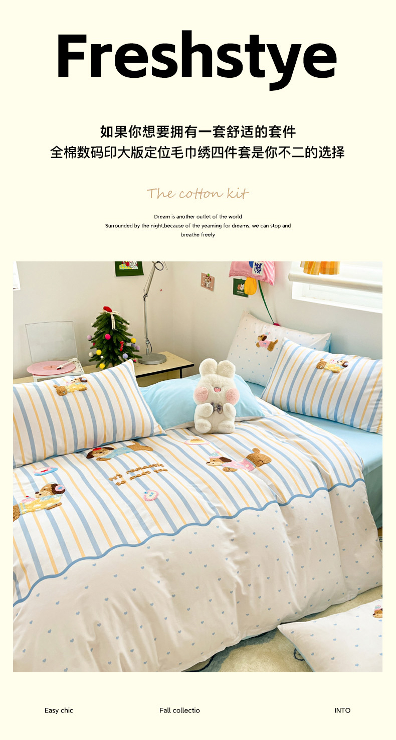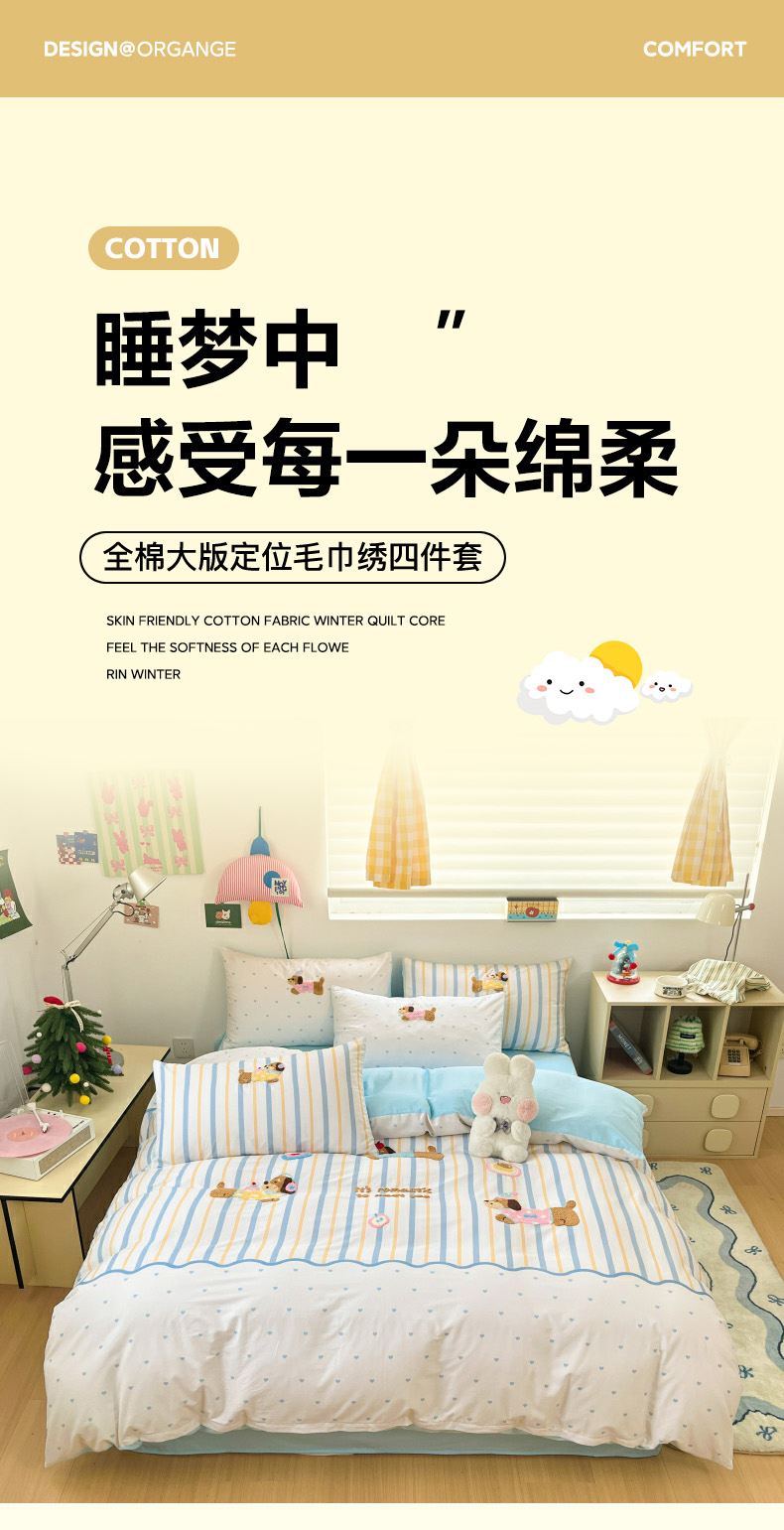 当前位置: 91家纺网 > 商品网购 > 床品套件 > 四件套 > 全棉普通四件套 > 丽涵家纺 2026新款全棉纯棉数码印大版定位毛巾绣四件套 休闲音乐狗
