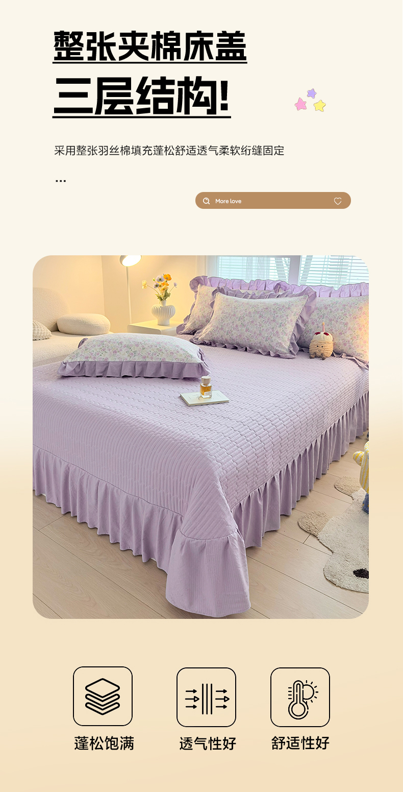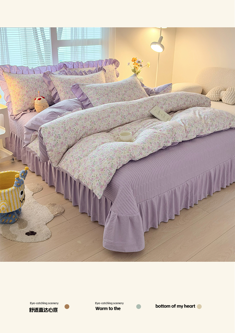 (总)民新家纺 2025新款牛奶绒夹棉床裙三件套,浪漫时光-浅紫,浪漫时光-灰,浪漫时光-大红,浪漫时光-浅粉,浪漫时光-浅蓝,浪漫时光-浅绿,浪漫时光-浅米黄