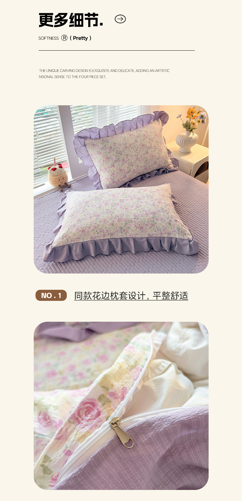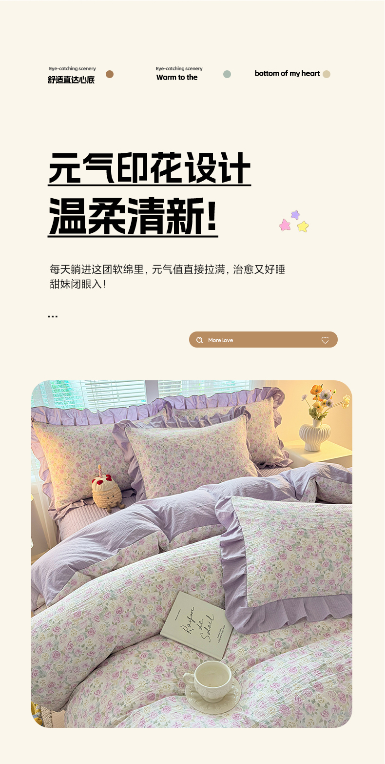 商品名称:民新家纺 2026新款泡芙双层纱床盖款四件套 水彩玫瑰
