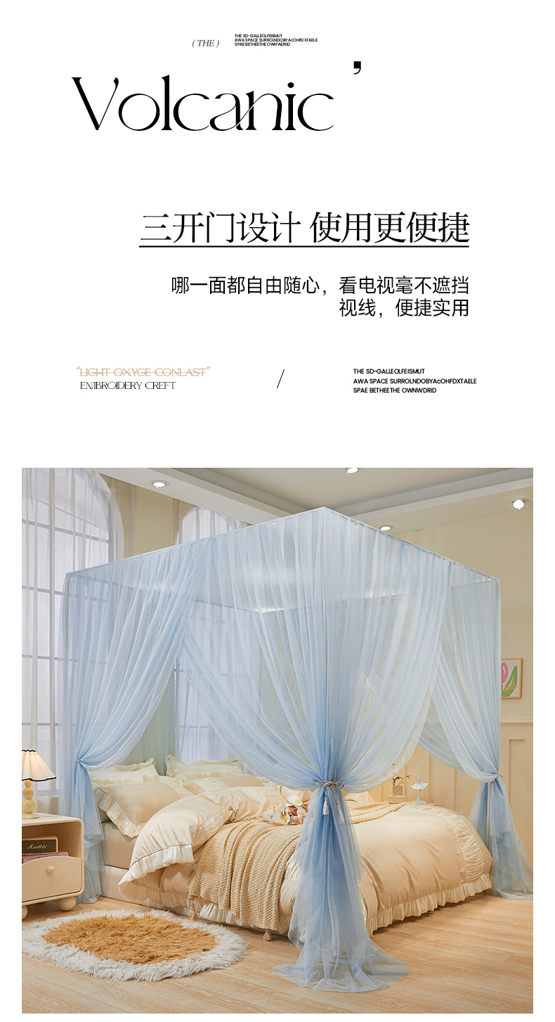 青竹苑 2026新款简约落地蚊帐 落地简约-冰莓蓝