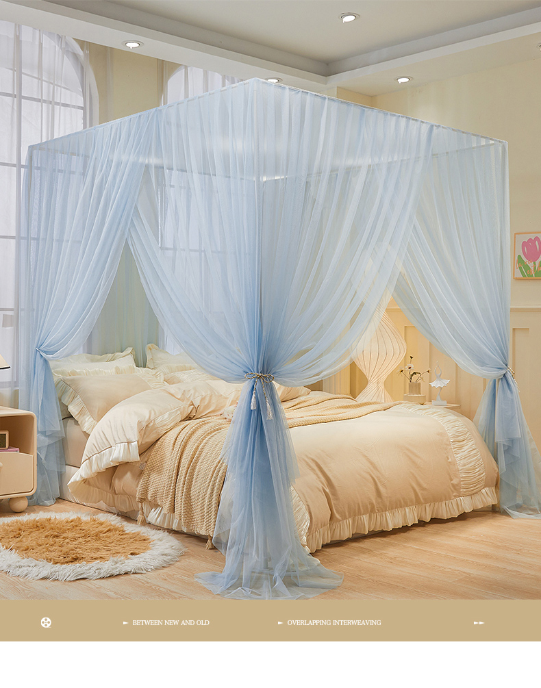 (总)青竹苑 2026春夏新款双层纱撞色落地蚊帐,孔雀蓝,薄荷绿,宝蓝,嫩粉色,柠檬黄,太妃紫,香槟色,玉色